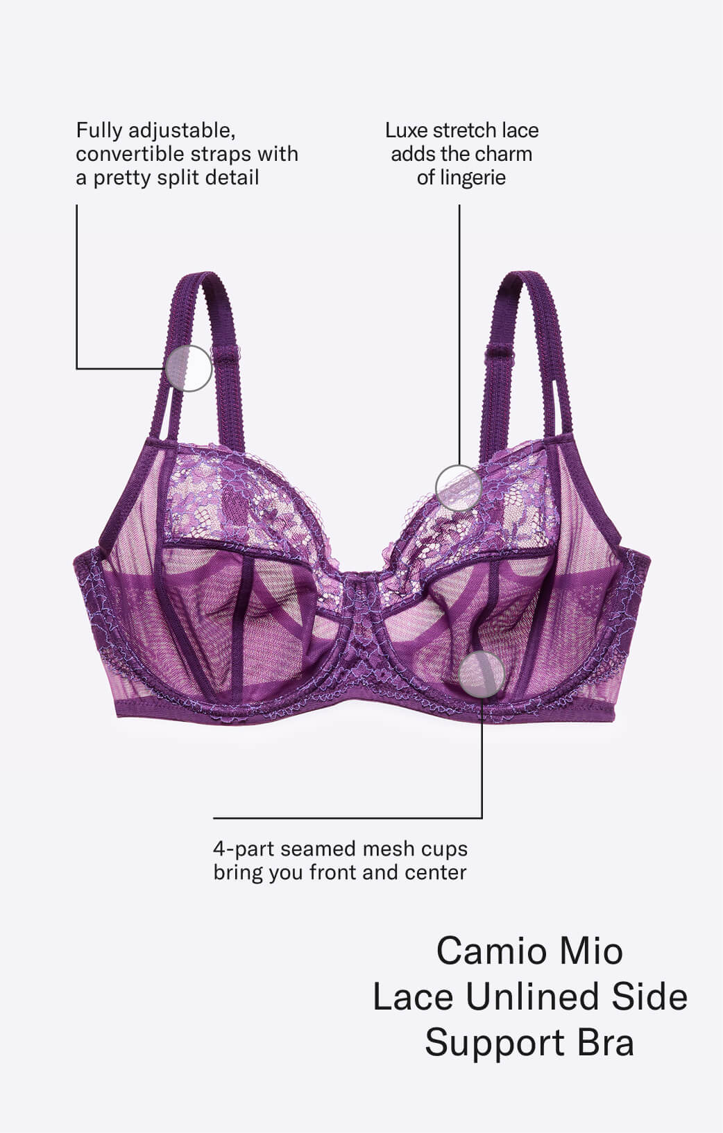 Do you wear a smaller band and a larger cup? Try side support on for size. Multipart cups shape you using seams (instead of molded cups) to bring you beautifully in and up.