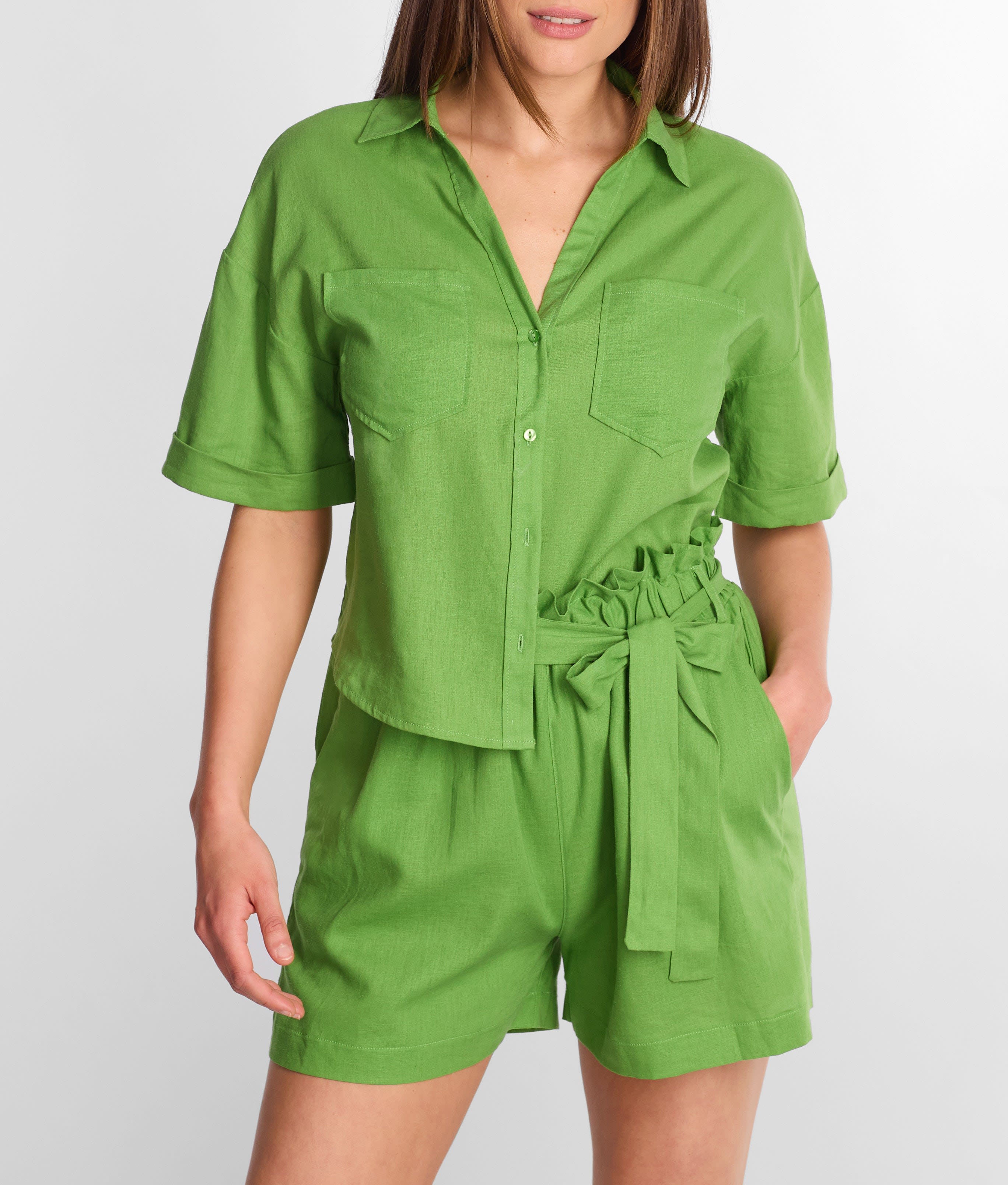 • Soft, non-stretch linen blend