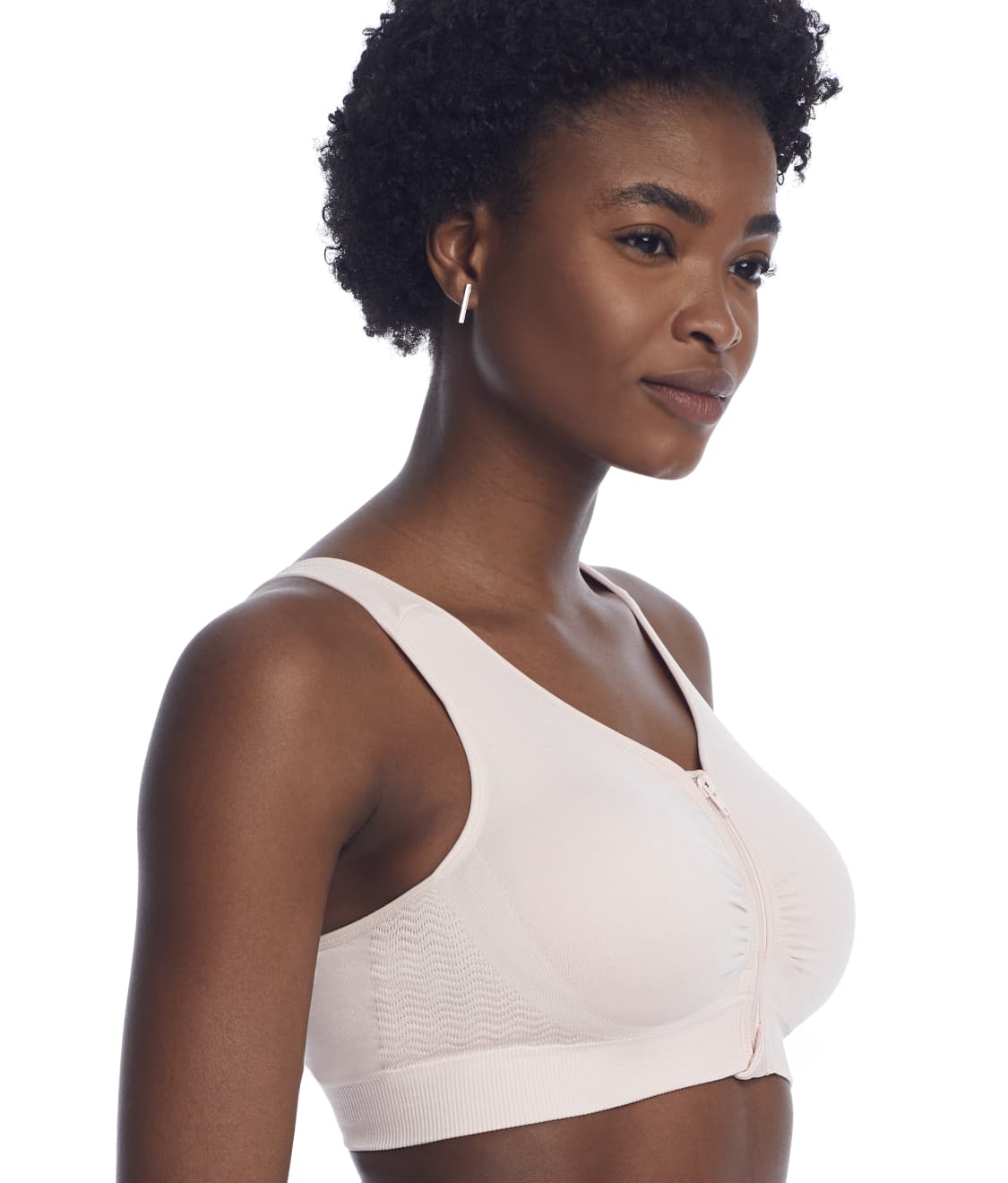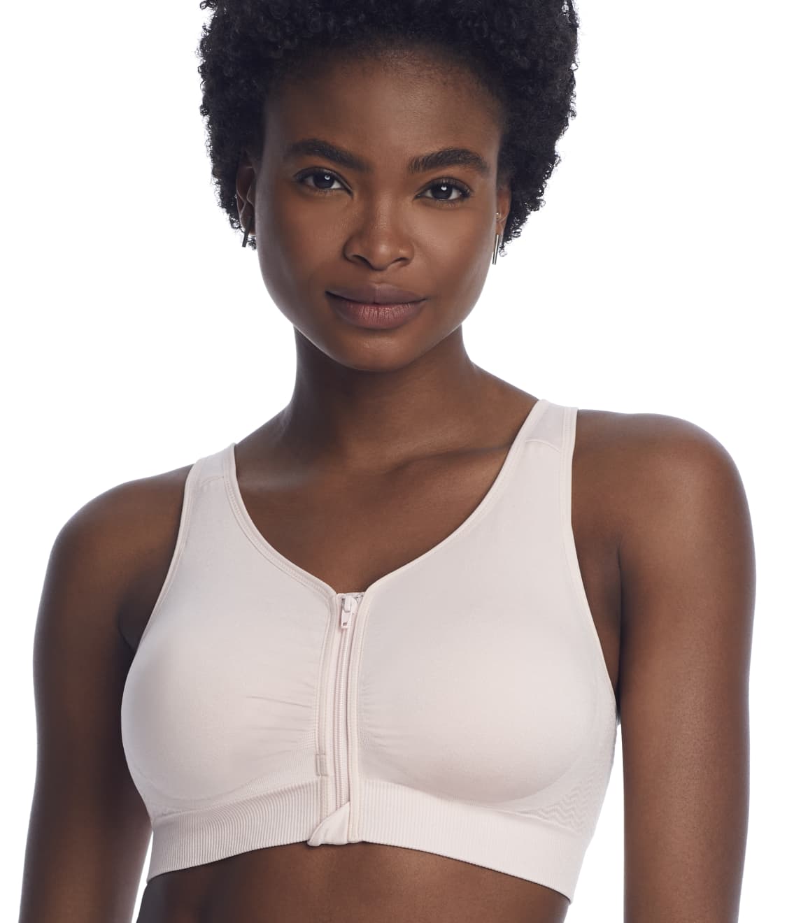 • Zipper front-closure for ease of wear