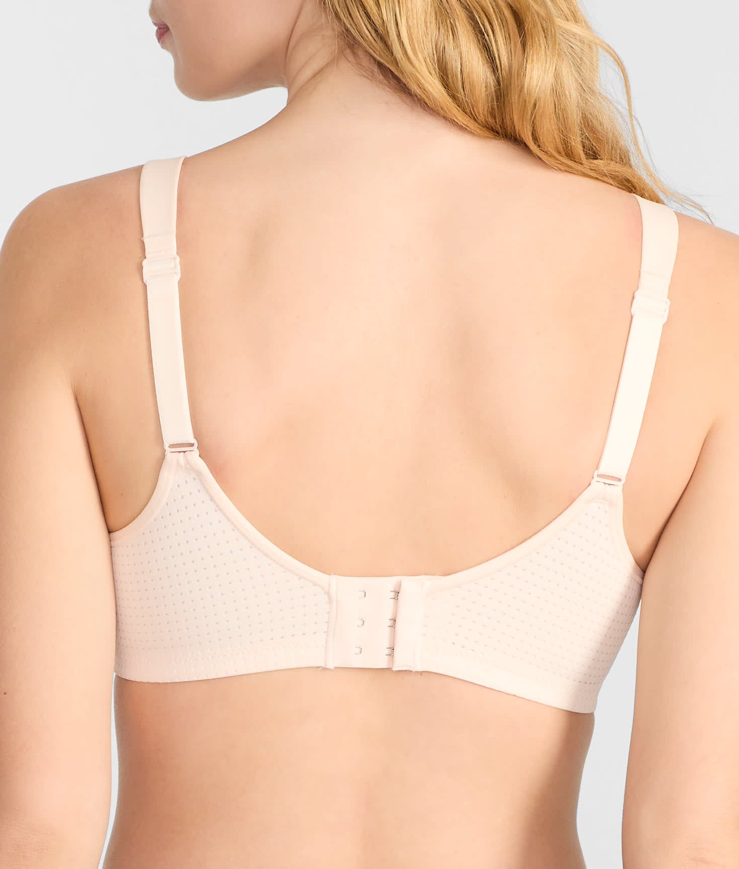 • Molded double-layer cups constructed with a stretch, delicately perforated fabric