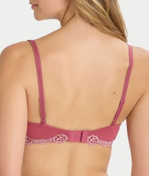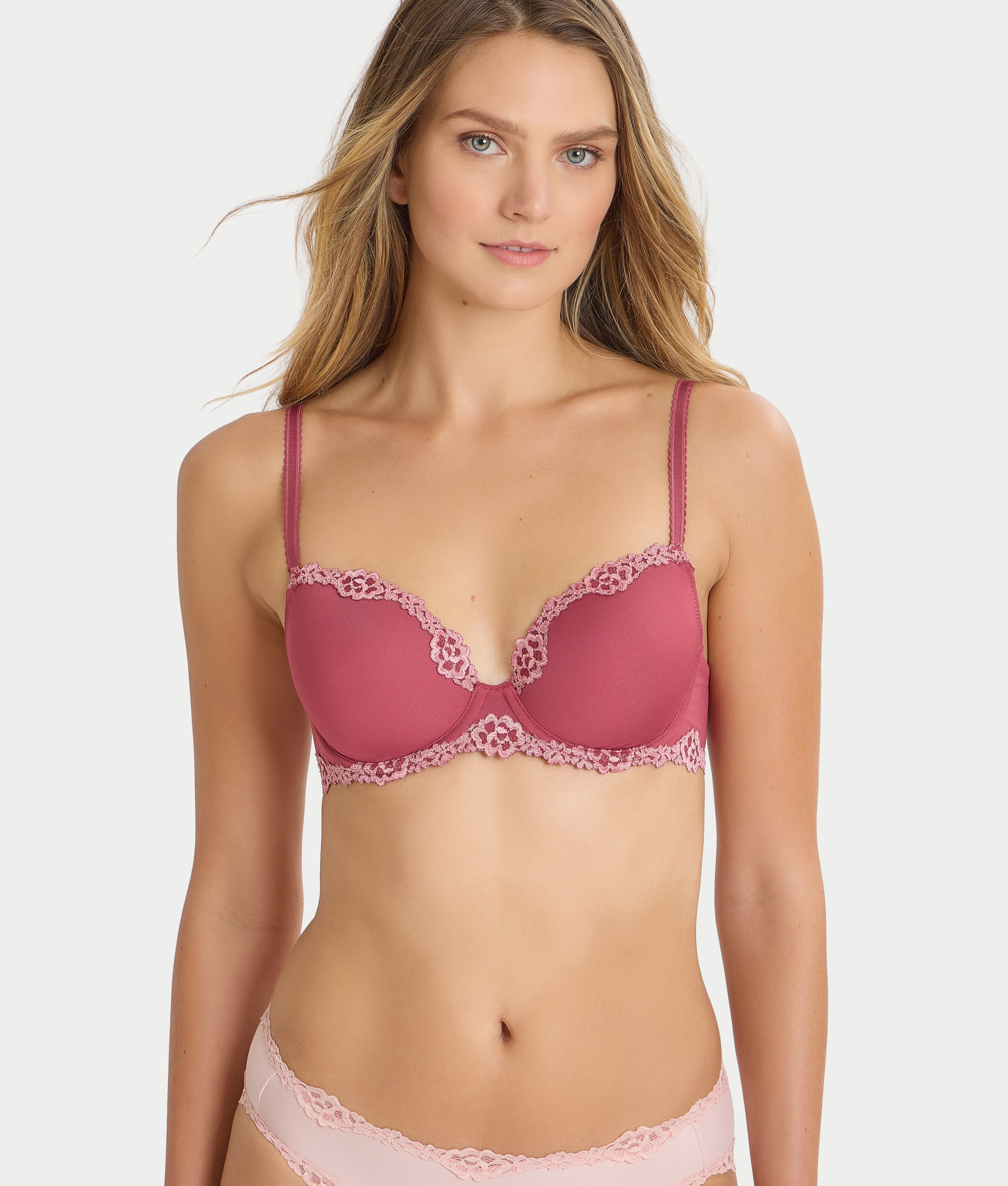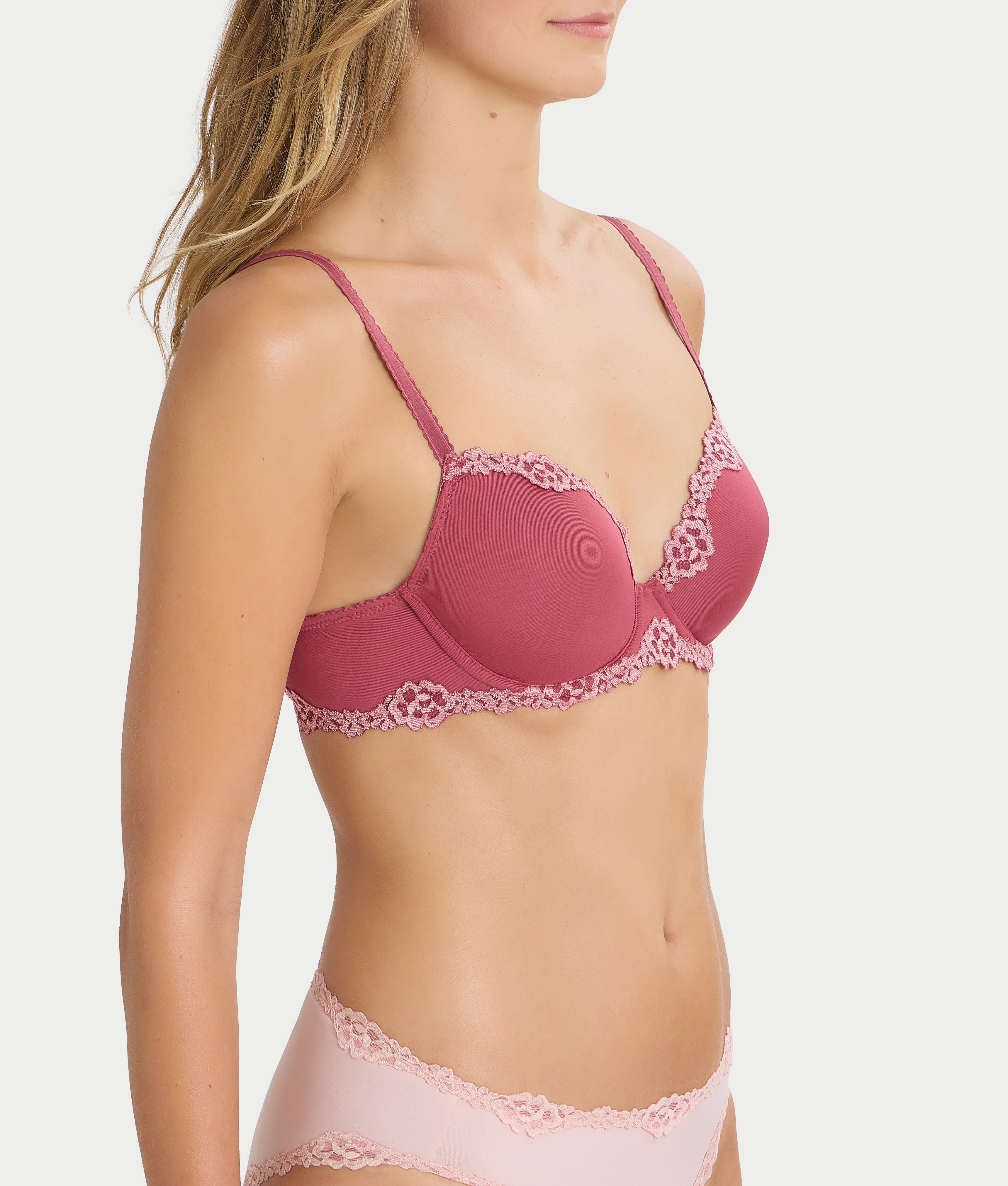 - Ultra-soft underwire t-shirt bra is styled with delicate lace details