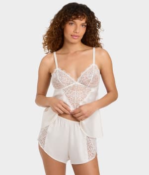 - Sexy meets sophisticated in this lace and satin shorty