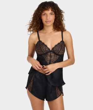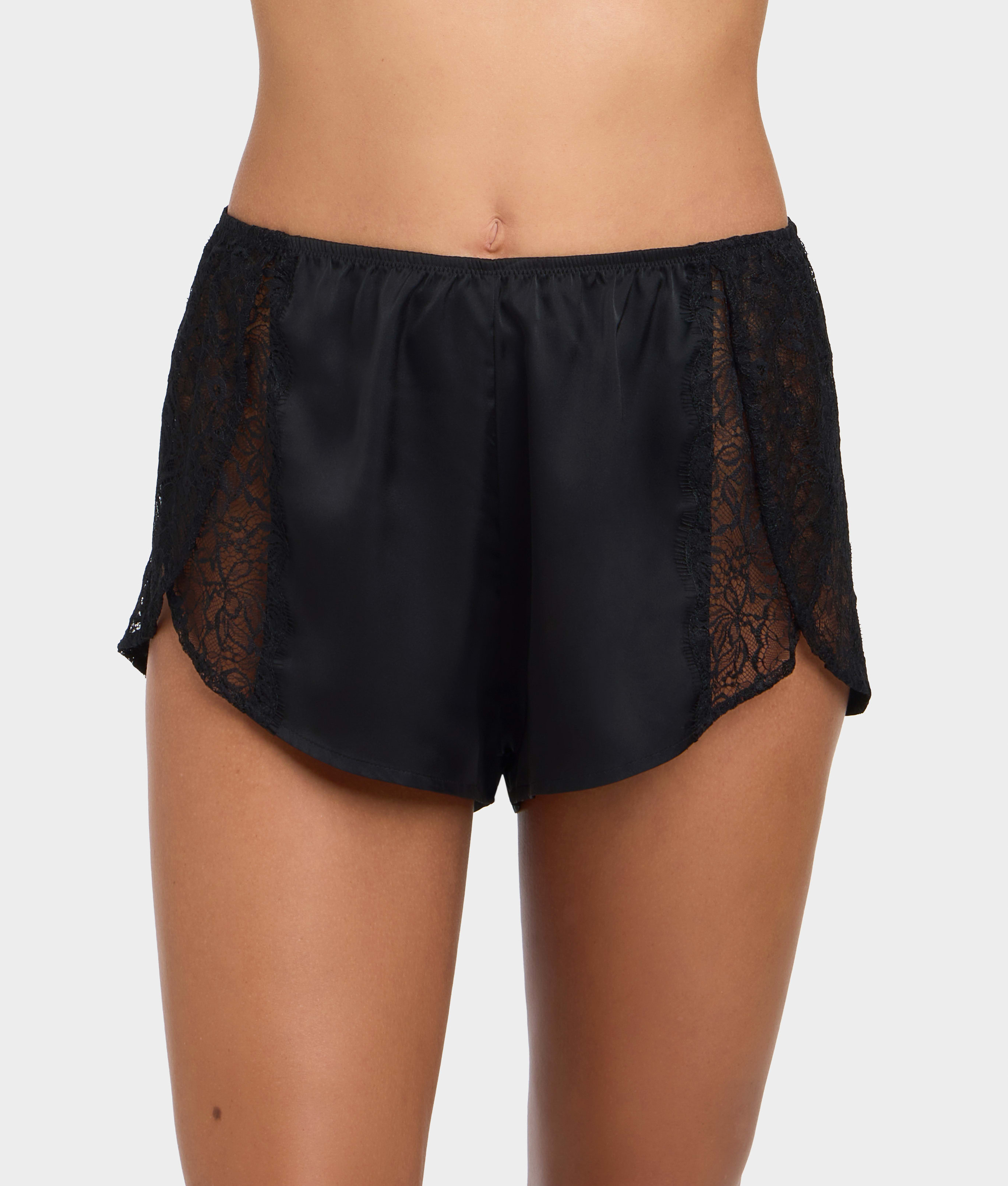 • Sexy meets sophisticated in this lace and satin shorty