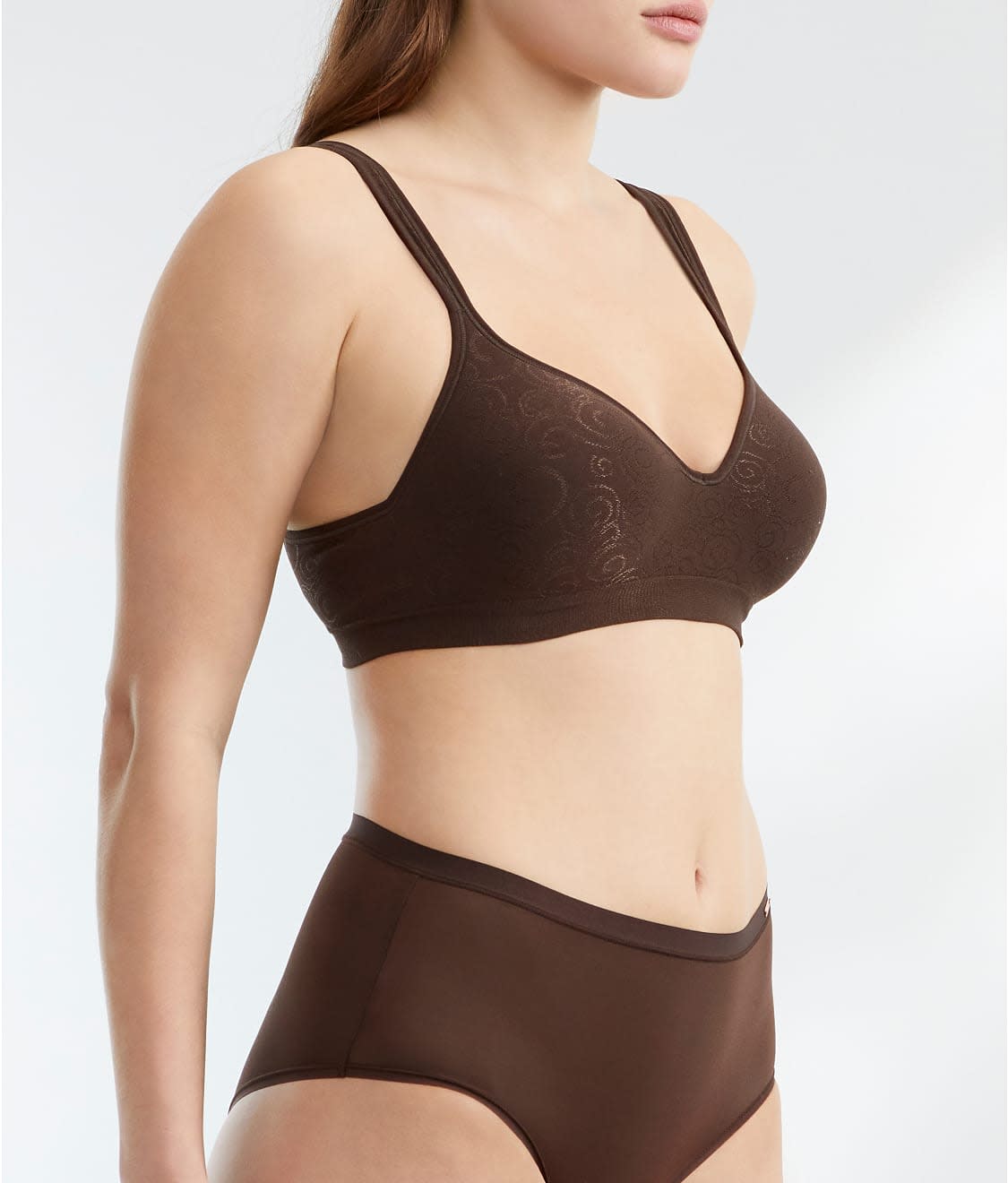 • Delicately patterned wire-free bra provides comfort