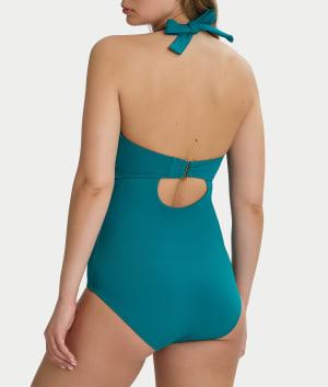 • Underwire plunging one-piece creates a confident, curve-enhancing silhouette