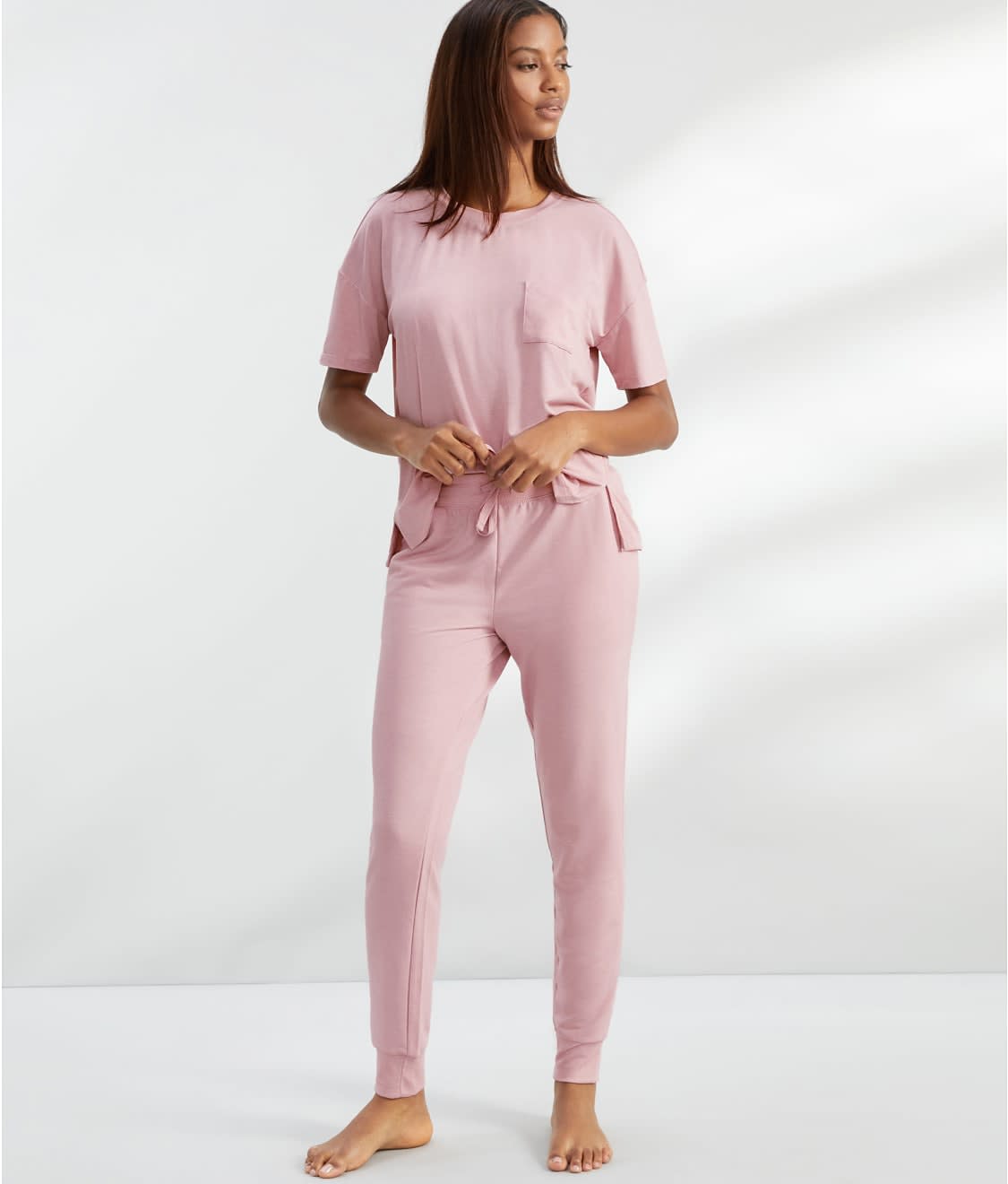 • Soft stretch polyester and modal blend