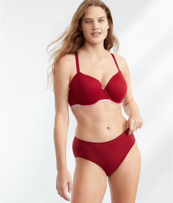 - Low rise waistband with full coverage rear