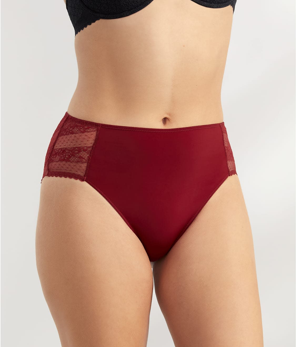 - Smooth stretch microfiber and lace with cotton panel