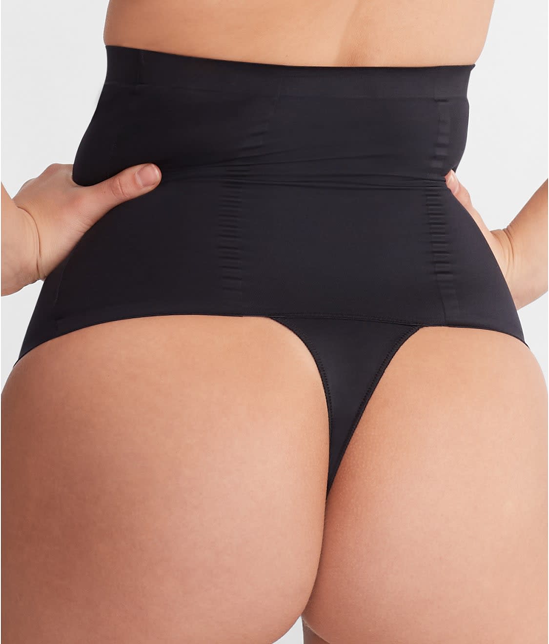 - High-waist thong shaper with buttery soft sheen fabric