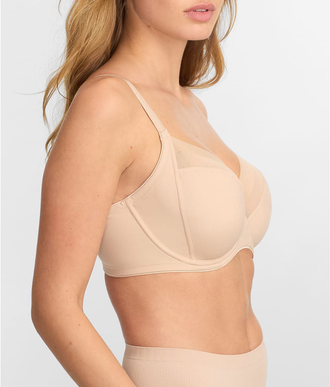 • Unlined underwire bra offers three-piece mesh panels