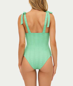 • A feminine and sophisticated one-piece with green hues