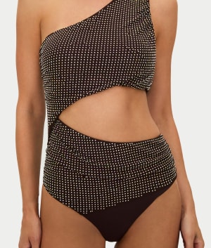 - Asymmetric one-shoulder design with sexy cut-outs
