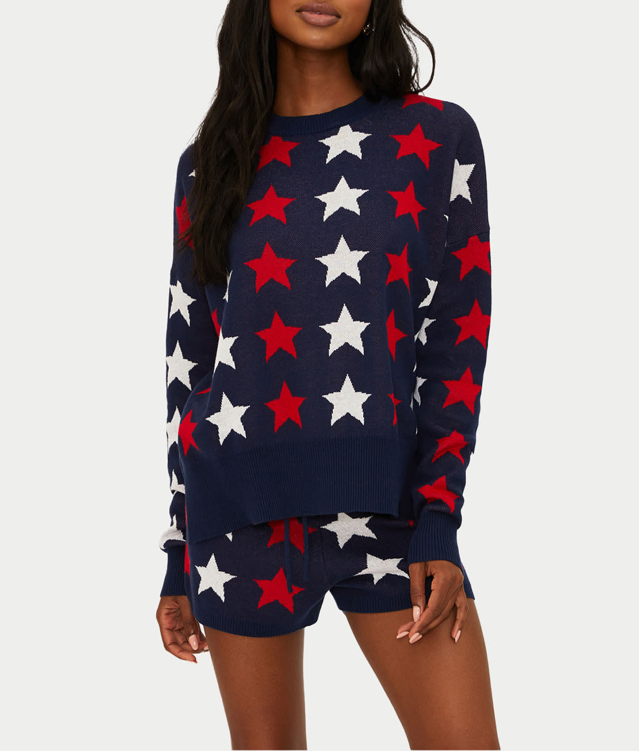 - Crew neckline and long sleeves with ribbed hem and cuffs