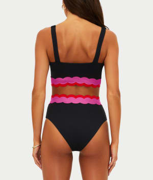 - Colorblock scalloped trim waistband