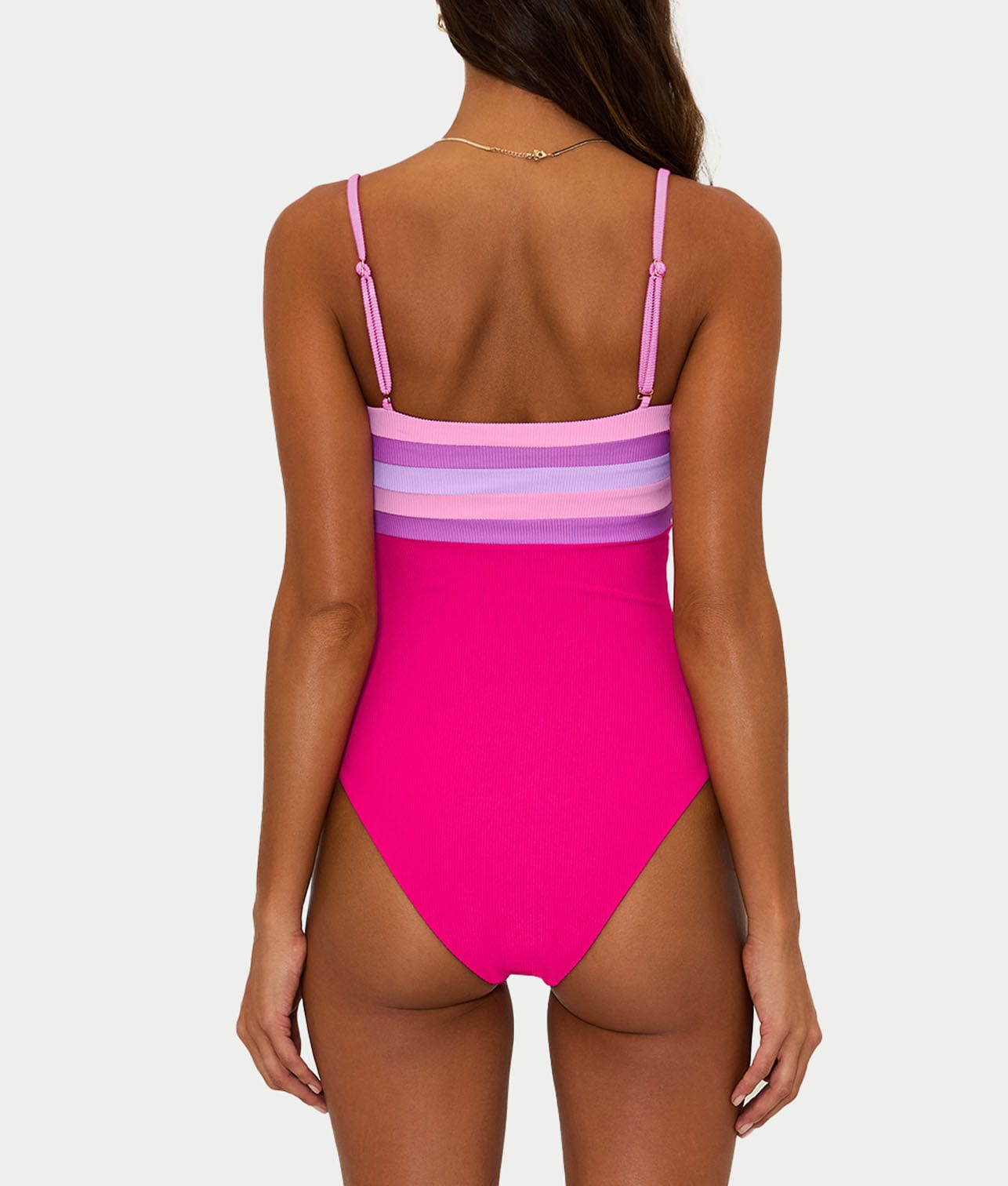 • Soak up the sun in this bright pink versatile one-piece