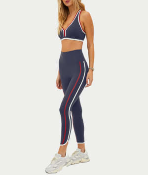 • Feel great while on-the-go in these sporty red, white and blue leggings