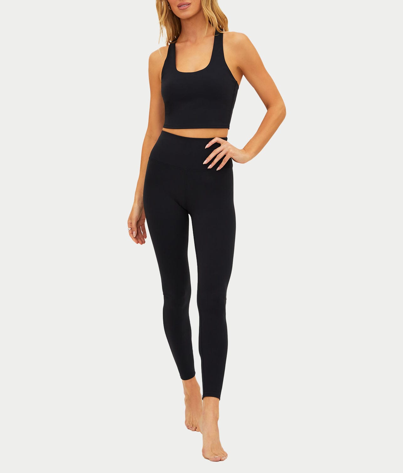 • Scoop neck with racerback design at back
