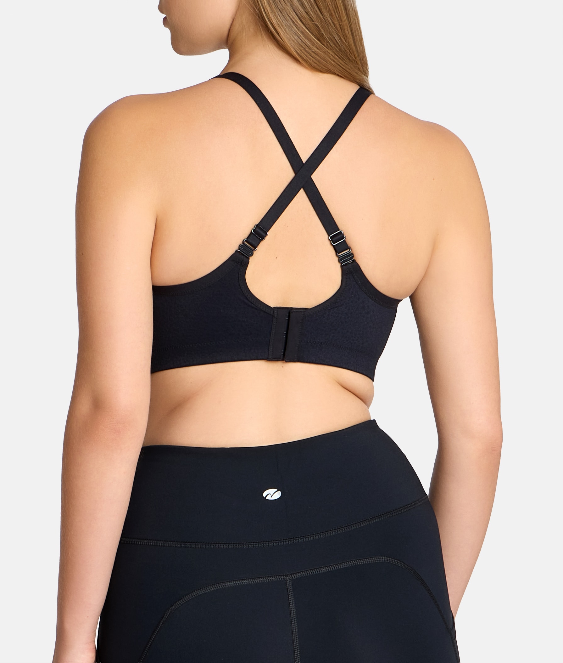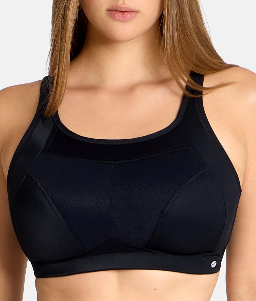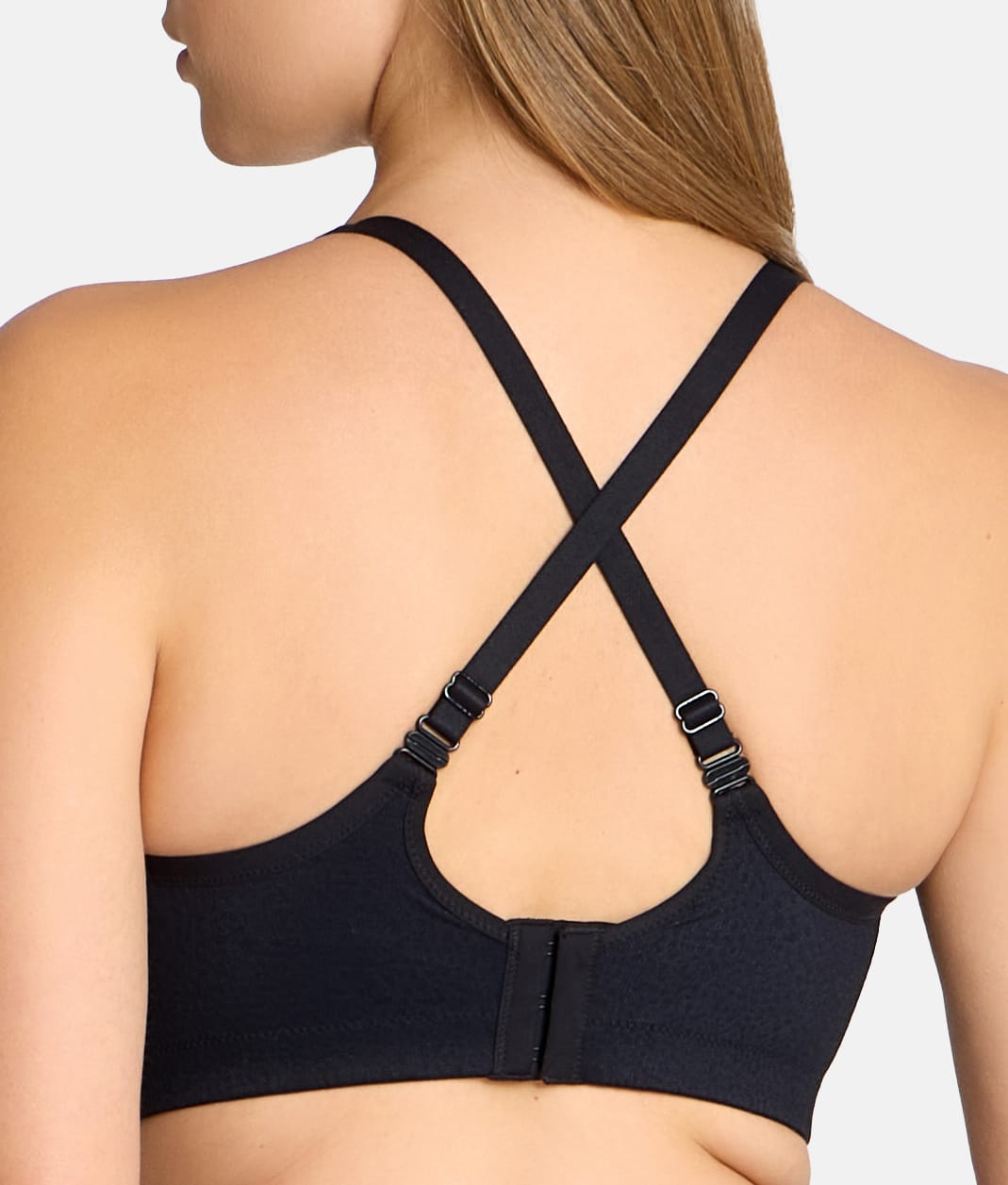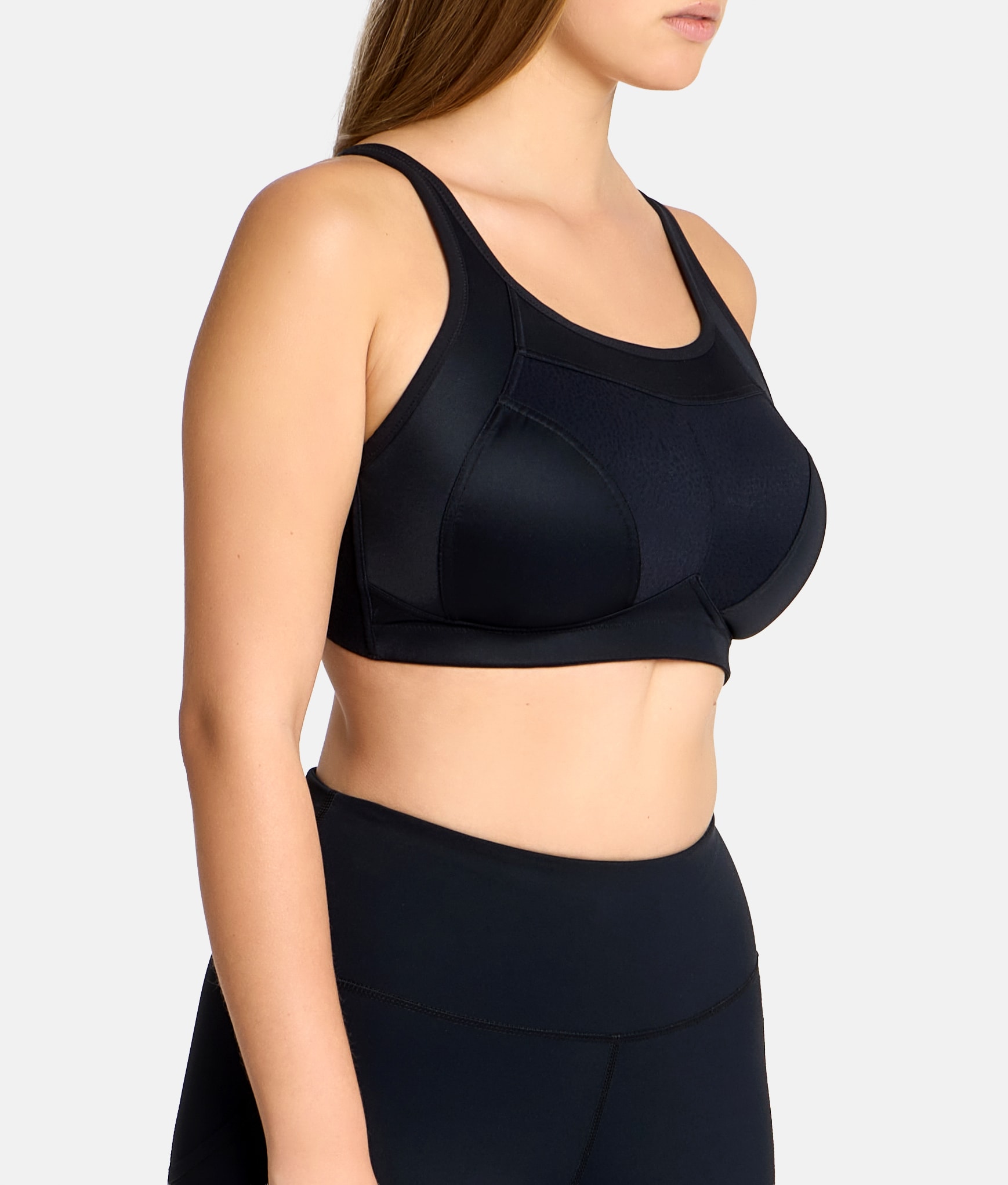 • Feel supported in comfort with this innovative wire-free, full coverage sports bra