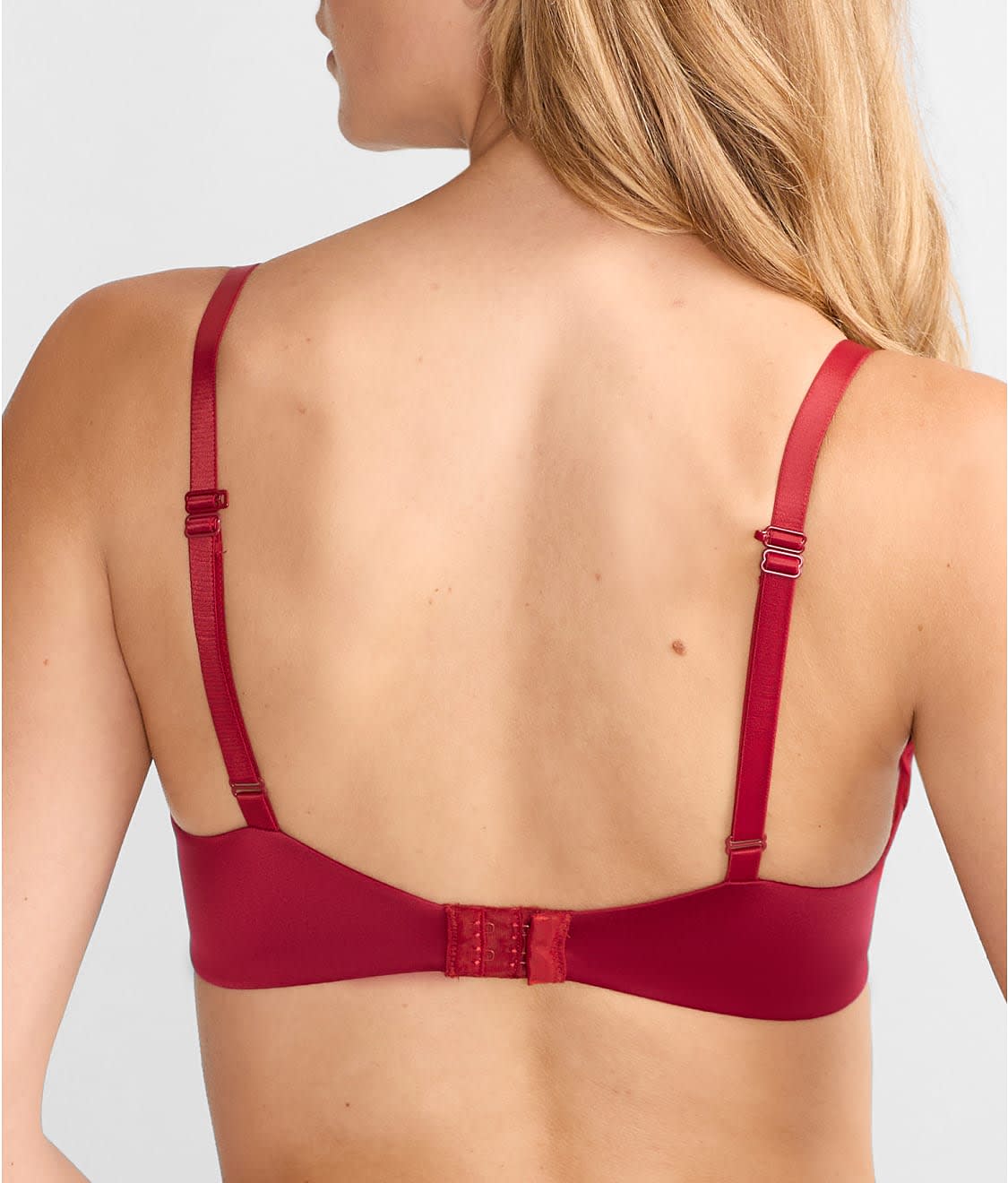 • Foam-lined, wire-free plunge cups with a subtle sheen