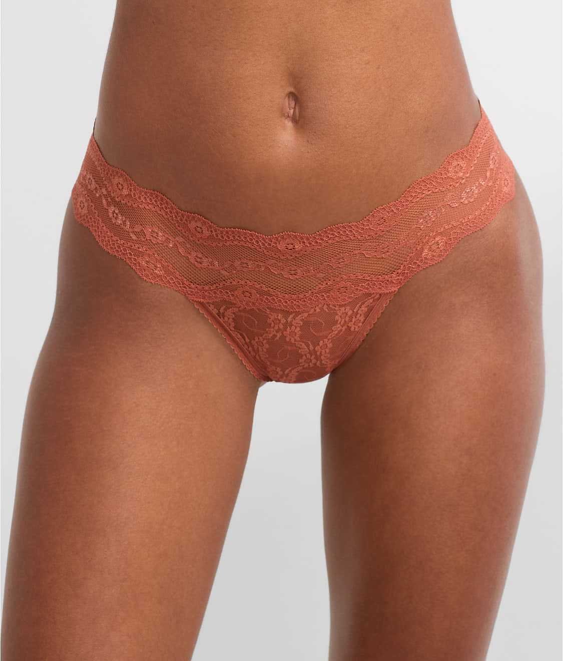 - Sexy, ultra-low rise lace thong with 3" wide waistband