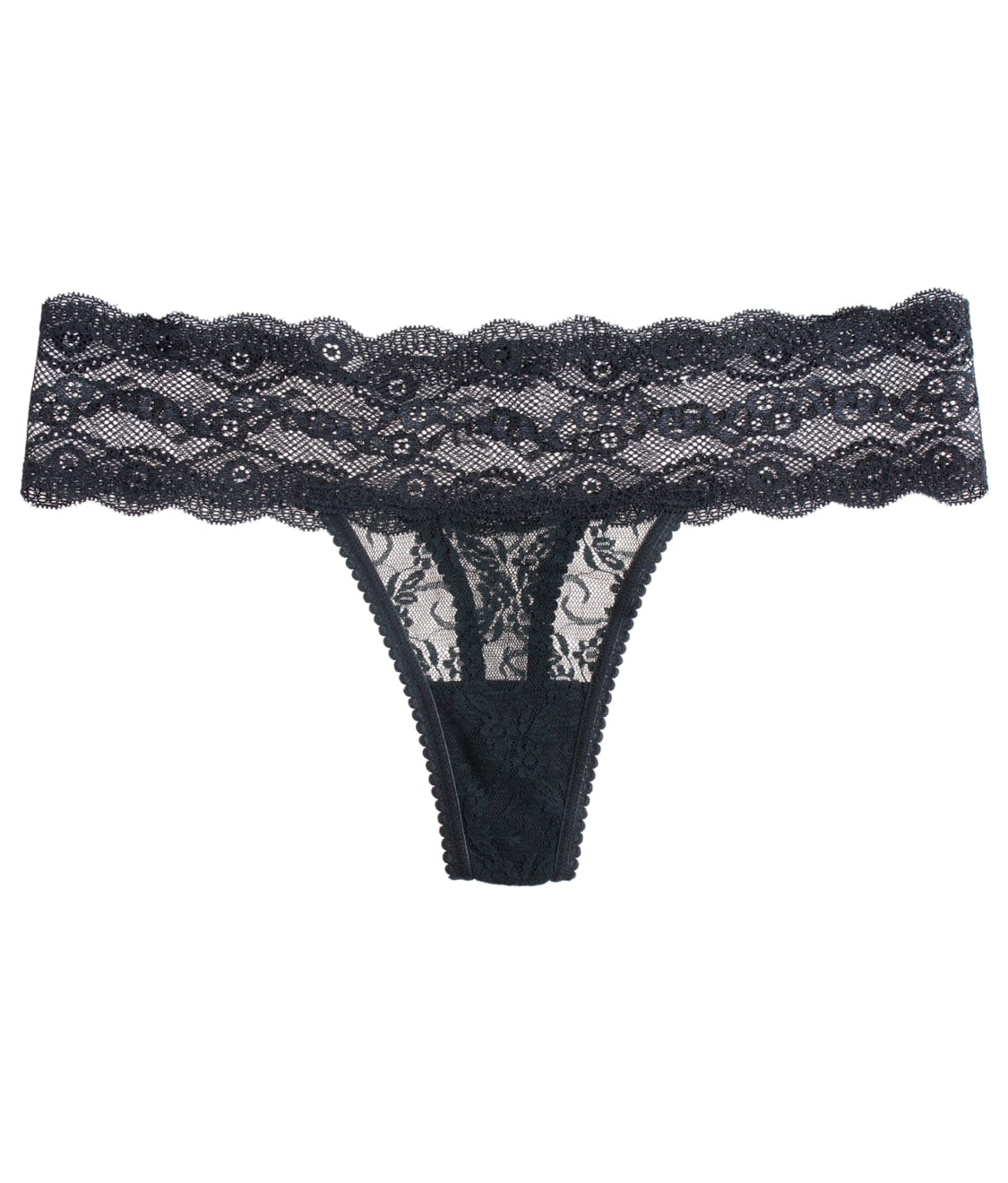 • Sexy, ultra-low rise lace thong with 3" wide waistband