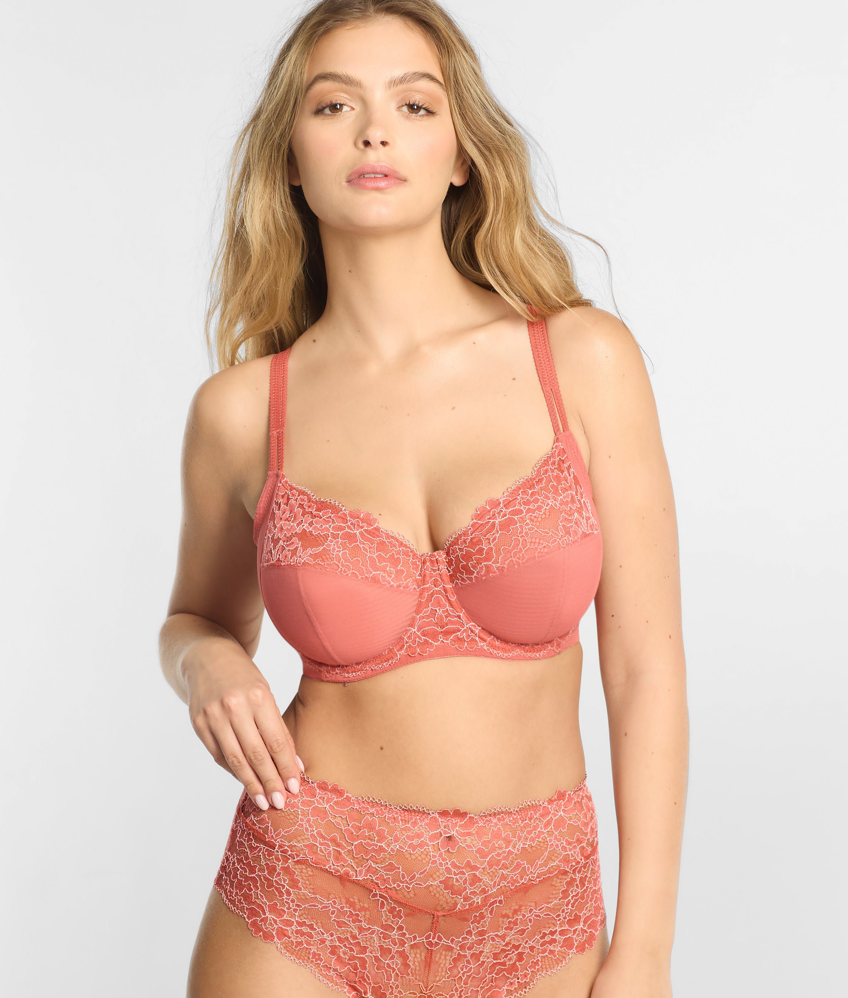 Lace: 62% Nylon, 28% Polyester, 10% Spandex. Cups: 100% Nylon. Wings: 70% Nylon, 30% Spandex.