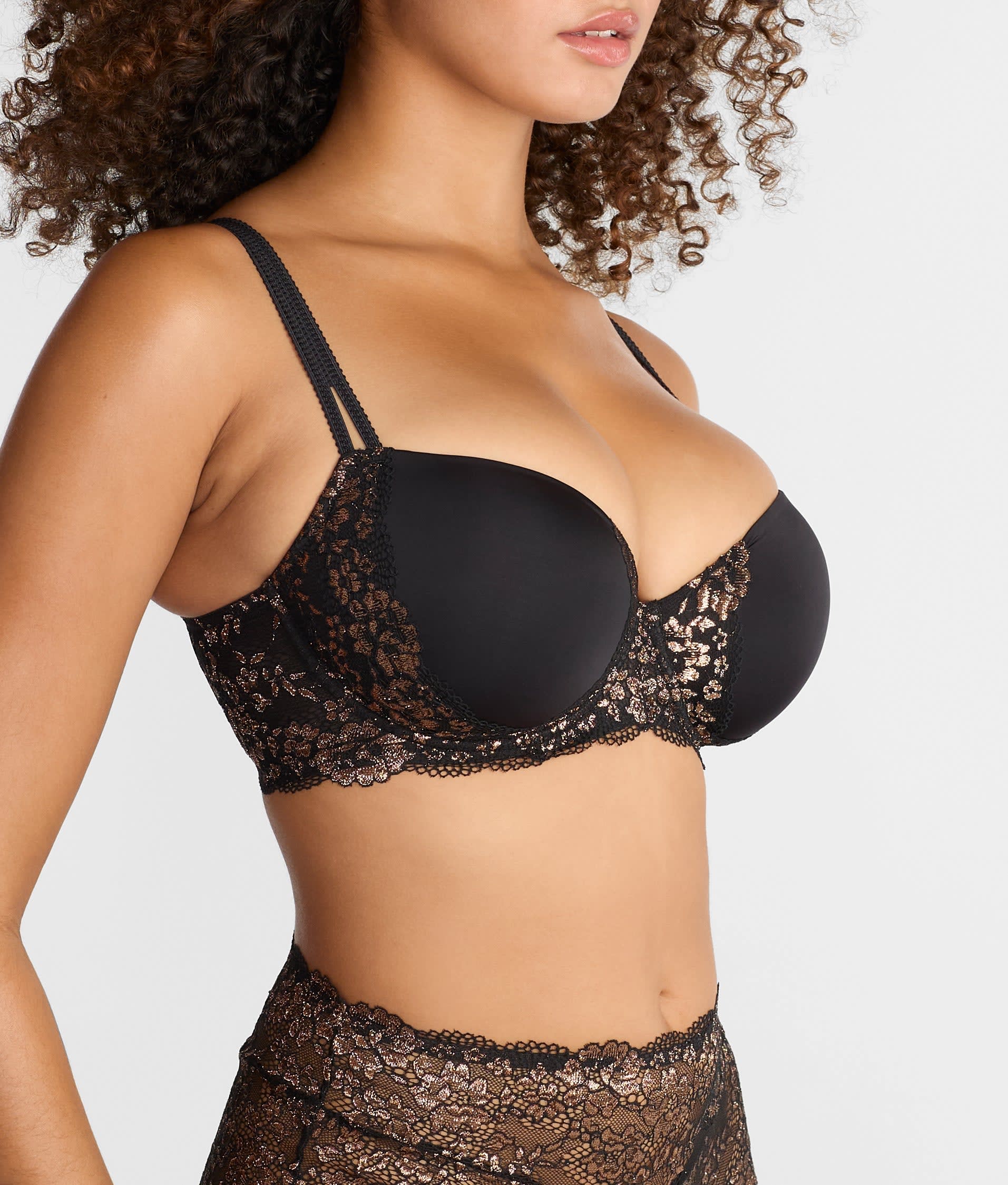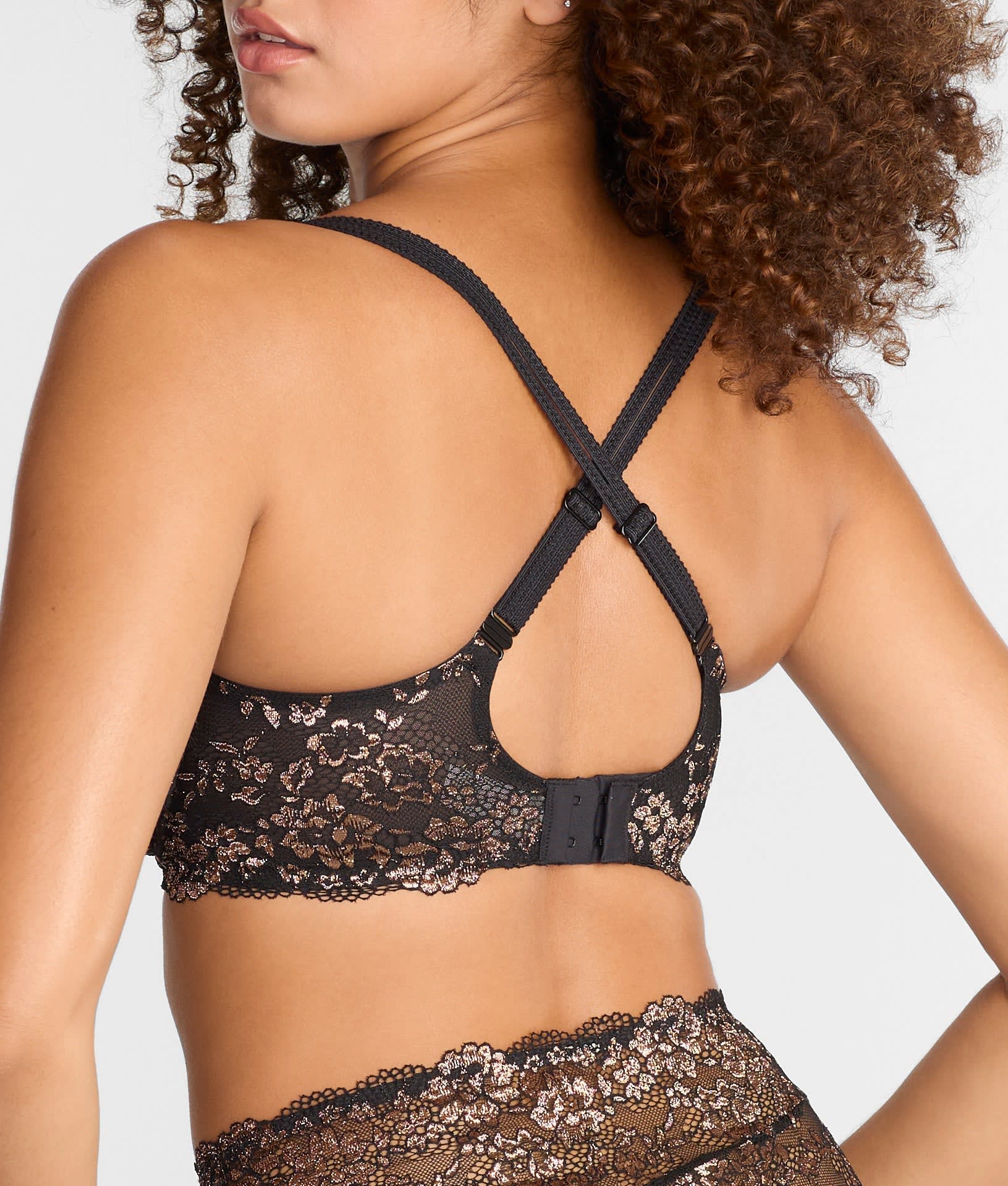 • Plush 4 column, 2 row hook & eye closure; increases with size