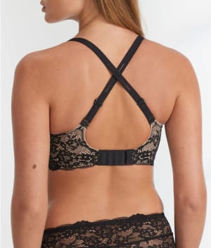 • Plush 4 column, 2 row hook & eye closure; increases with size