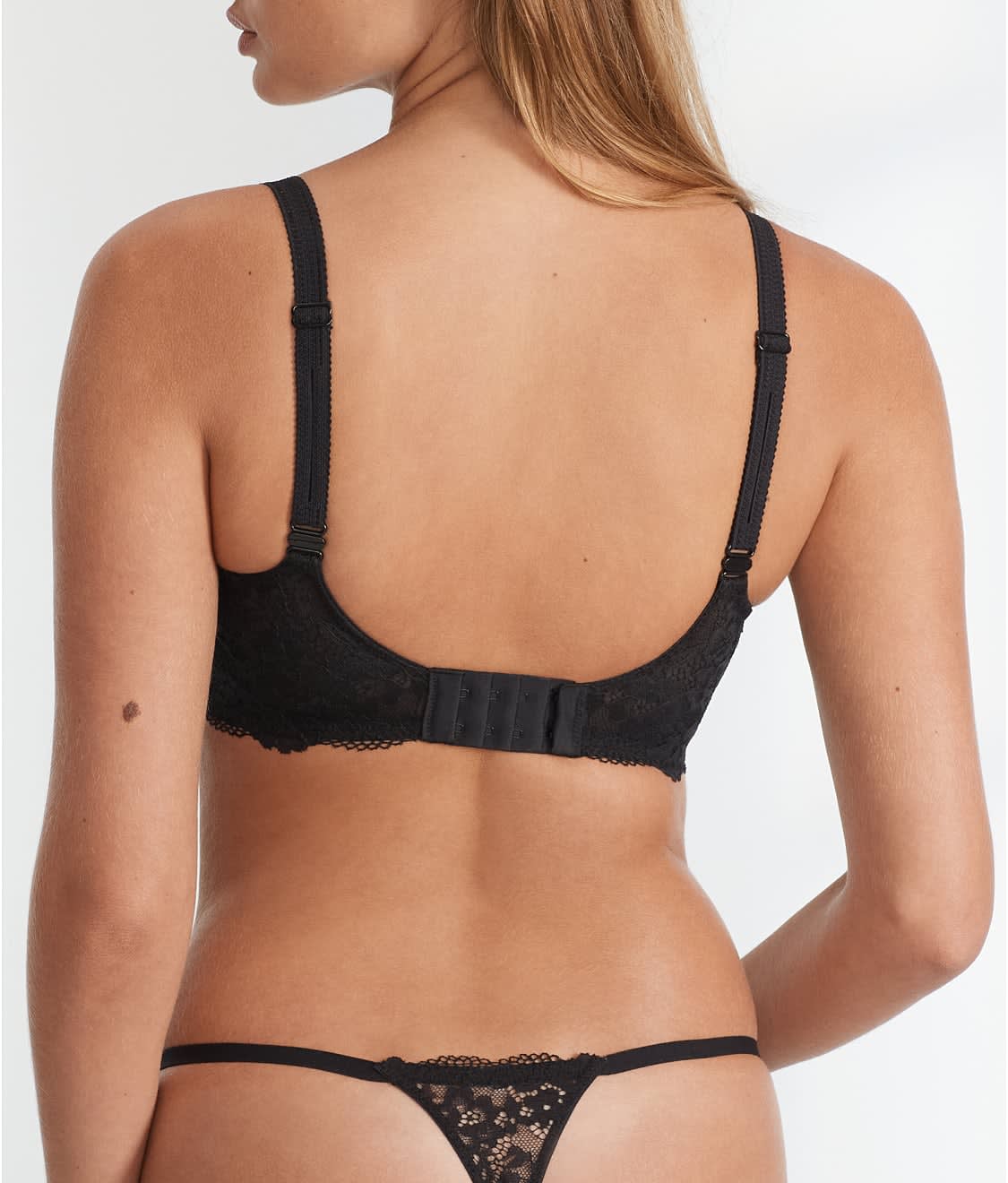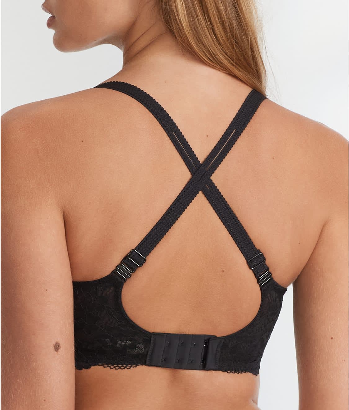 - Plush 4 column, 2 row hook & eye closure; increases with size