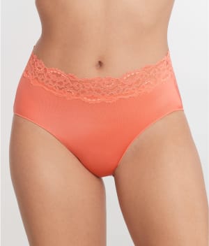 • Delicate scalloped lace trim on wide waistband