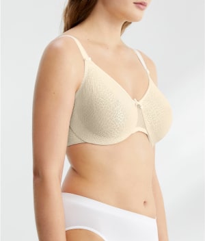 • Lightly lined underwire cups minimize while still creating a rounded, natural shape