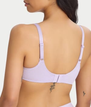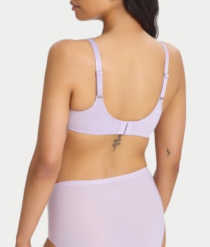 • Lightly lined underwire cups minimize while still creating a rounded, natural shape