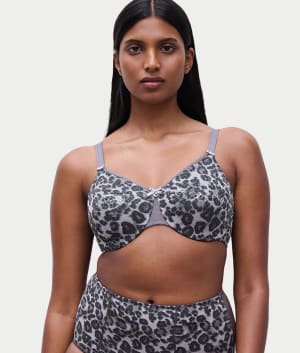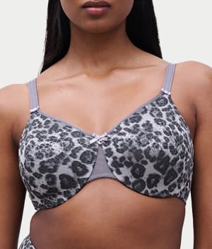 • Lightly lined underwire cups minimize while still creating a rounded, natural shape