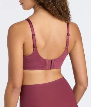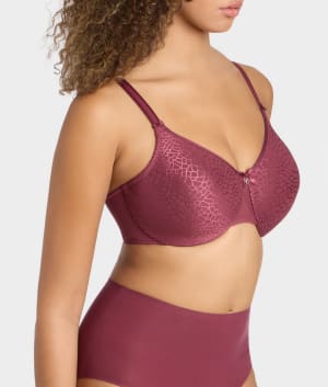• Lightly lined underwire cups minimize while still creating a rounded, natural shape