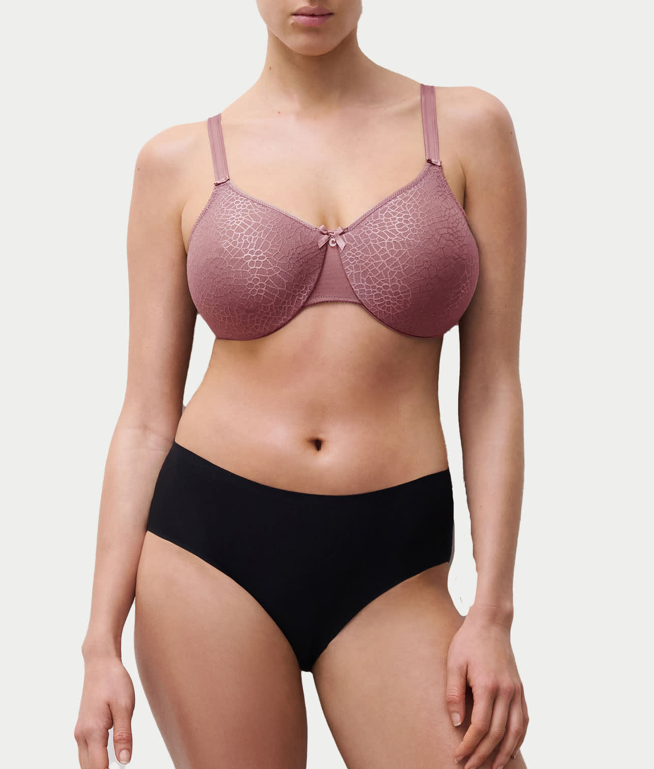 • Lightly lined underwire cups minimize while still creating a rounded, natural shape
