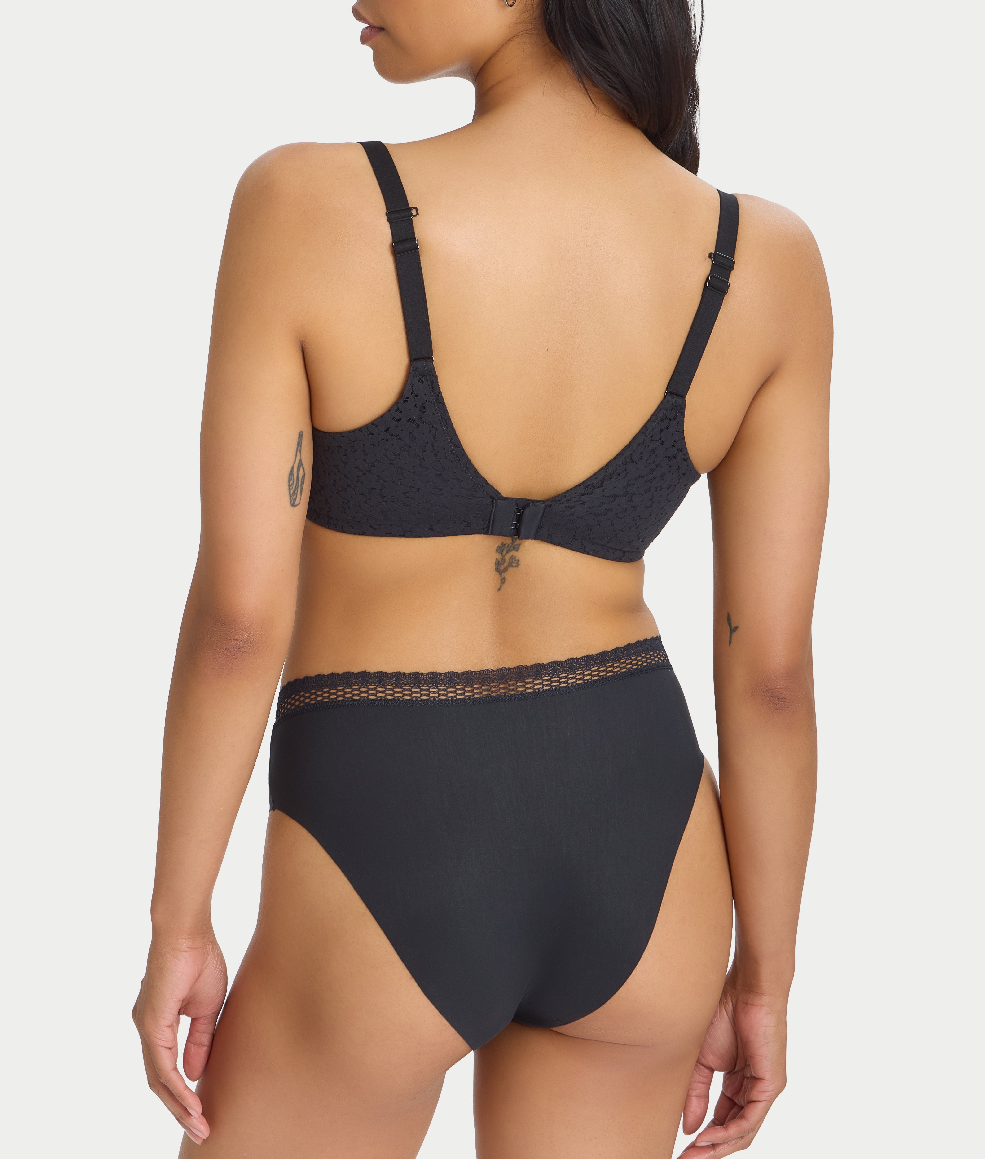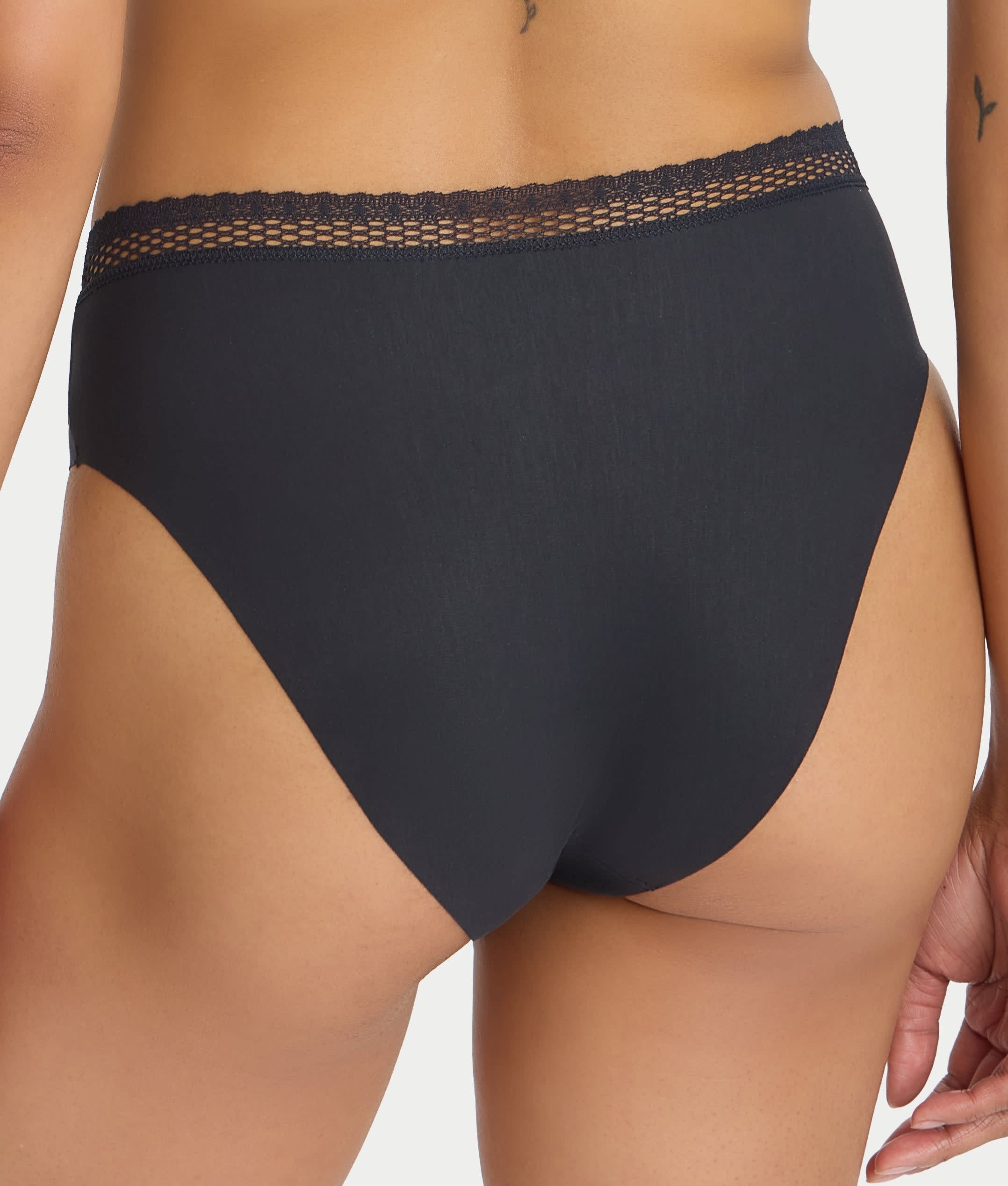 • Seamless high rise silhouette with a hi-cut look at the hip
