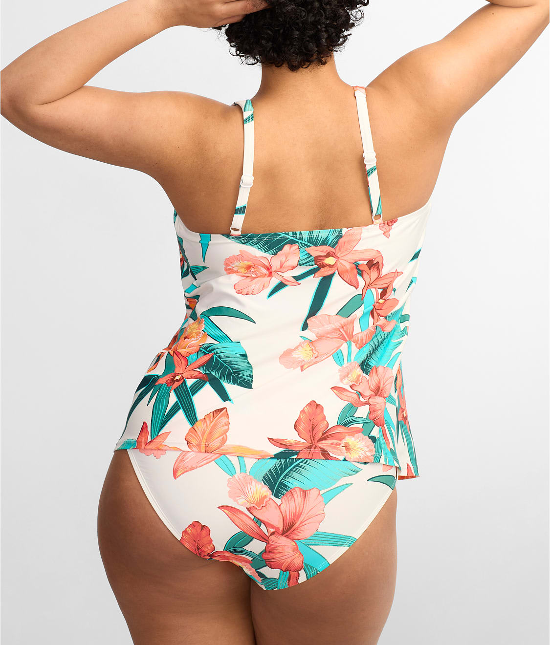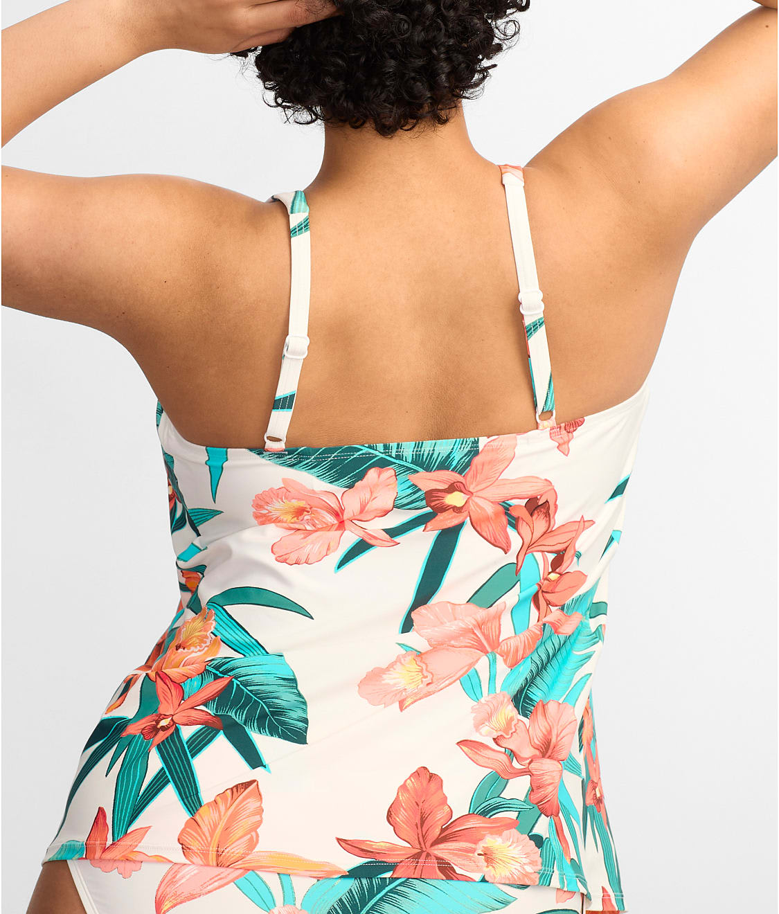 • Look your best in this tropical print tankini top
