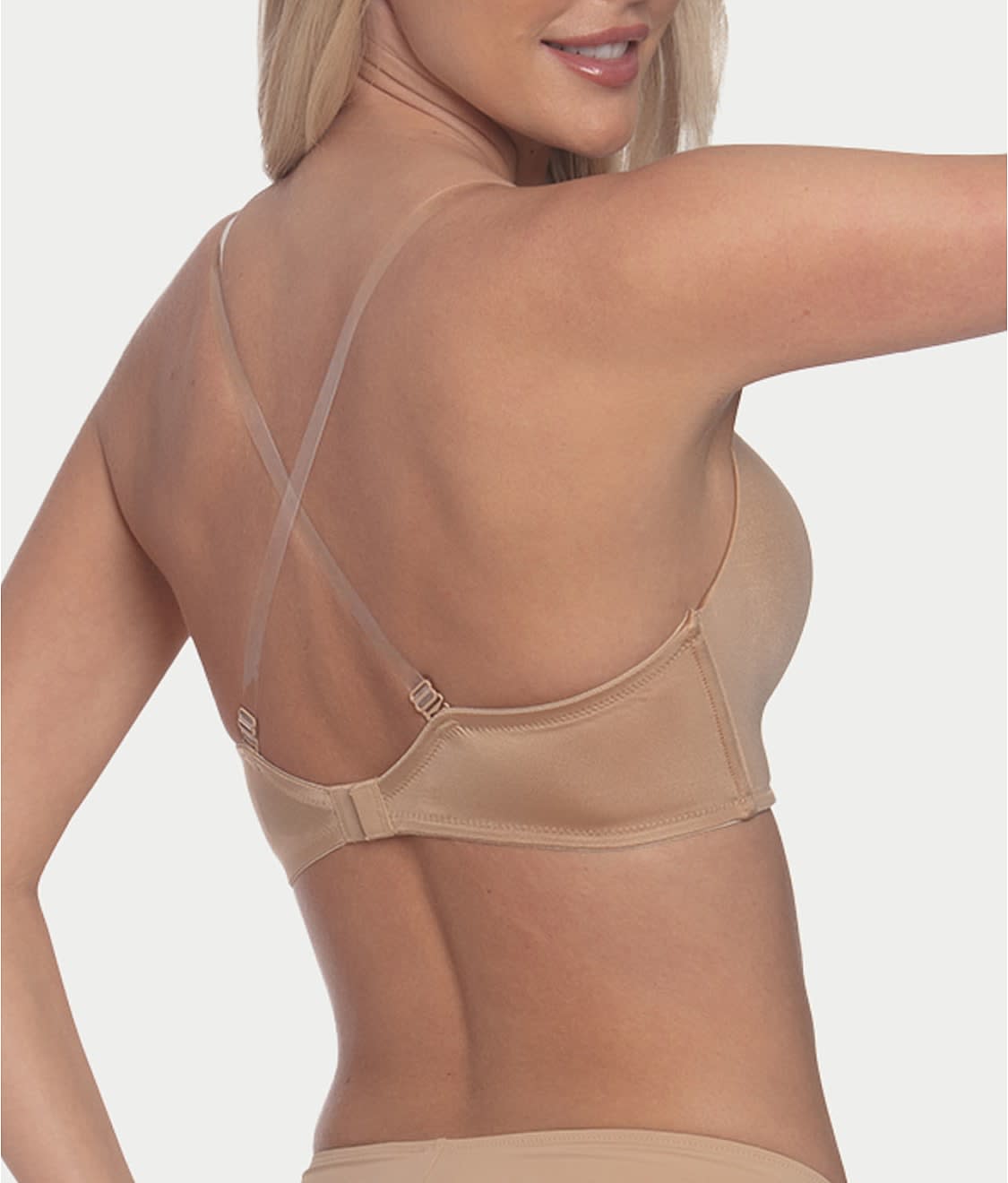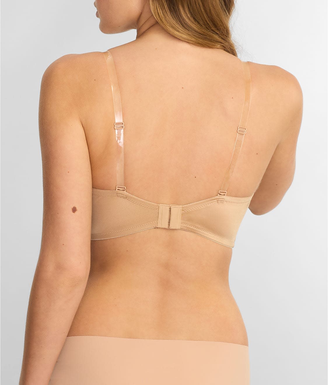 • Sleek 4-way convertible bra with deep U-wire plunge front