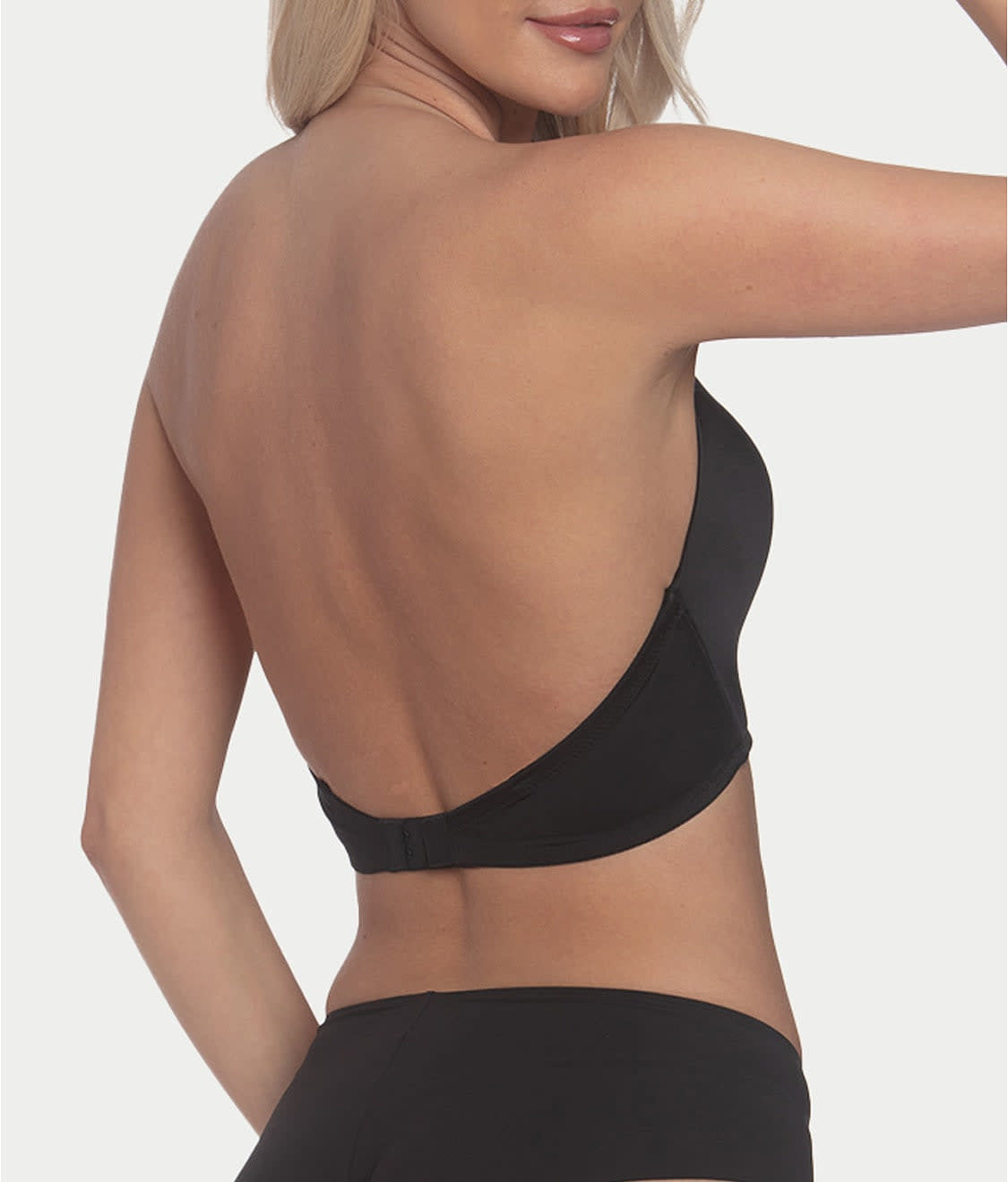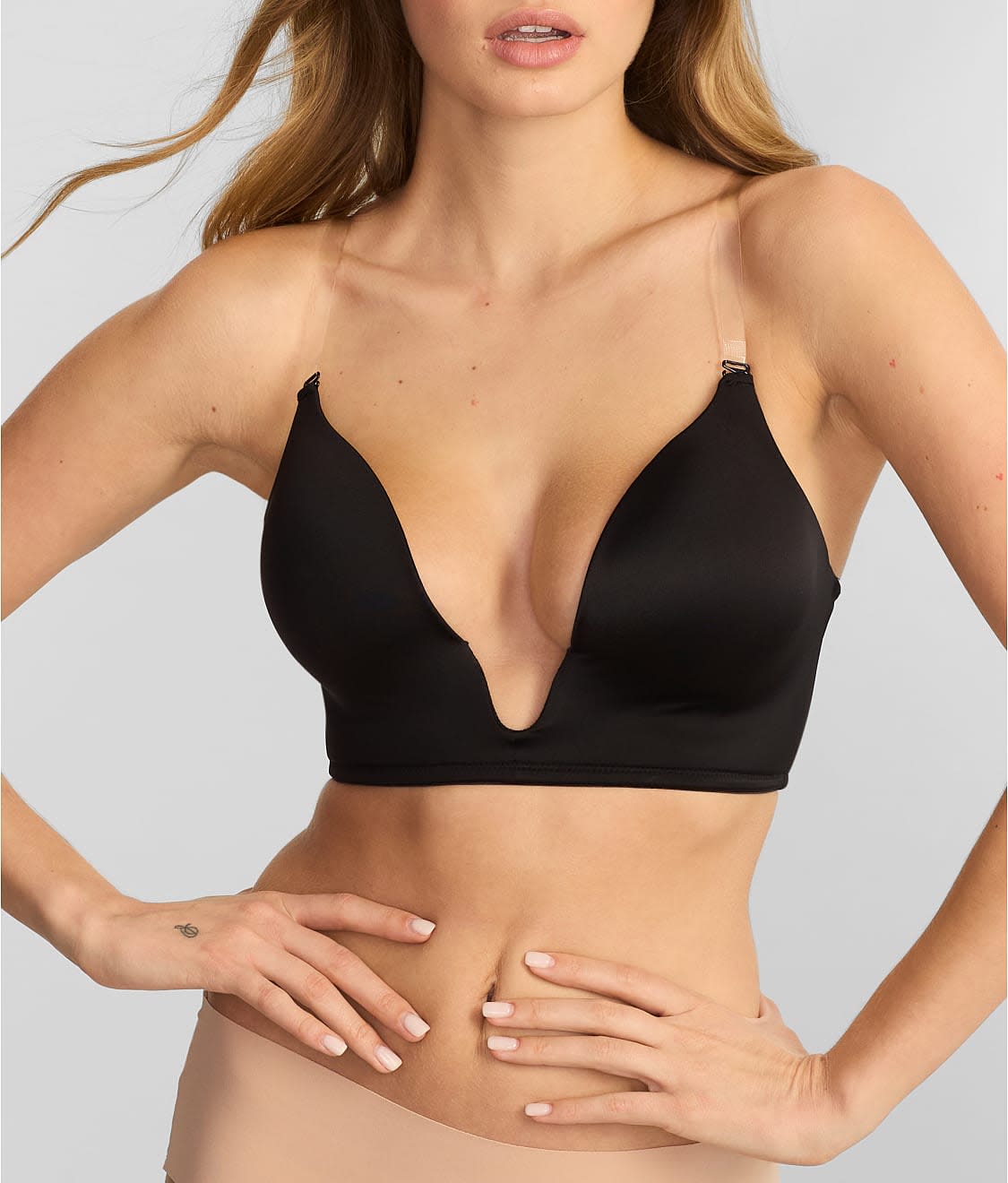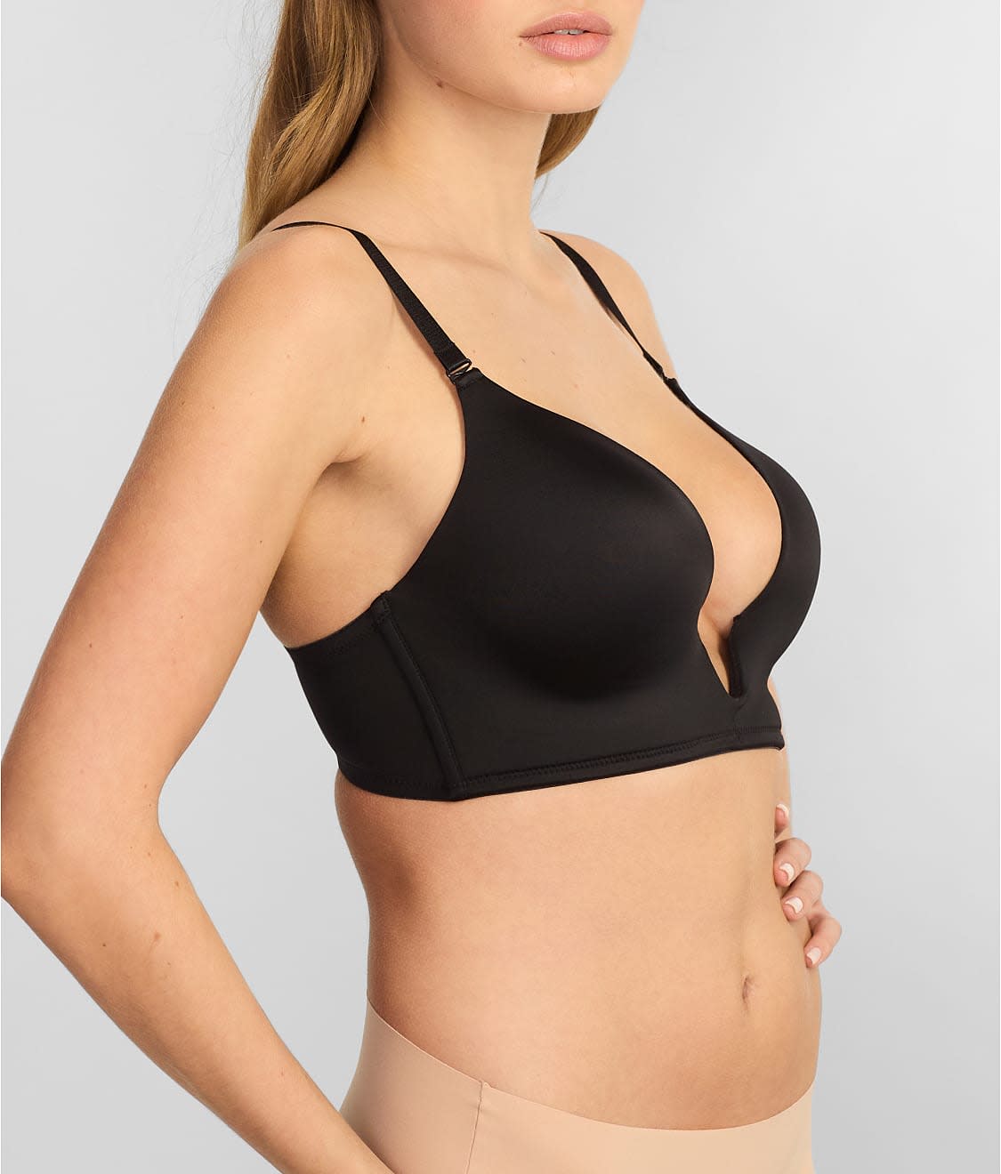 • Sleek 4-way convertible bra with deep U-wire plunge front
