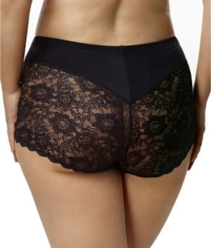 • Cheeky lace rear with no-dig elastic leg bands
