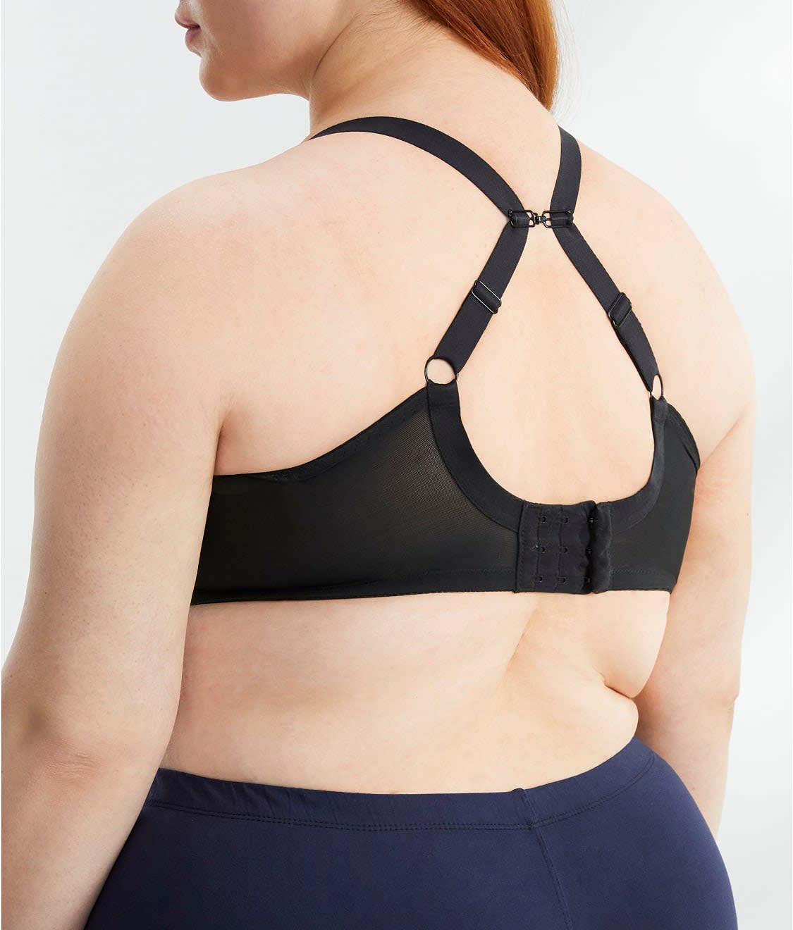 • Work out in this unlined, 4-part cup, underwire sports bra