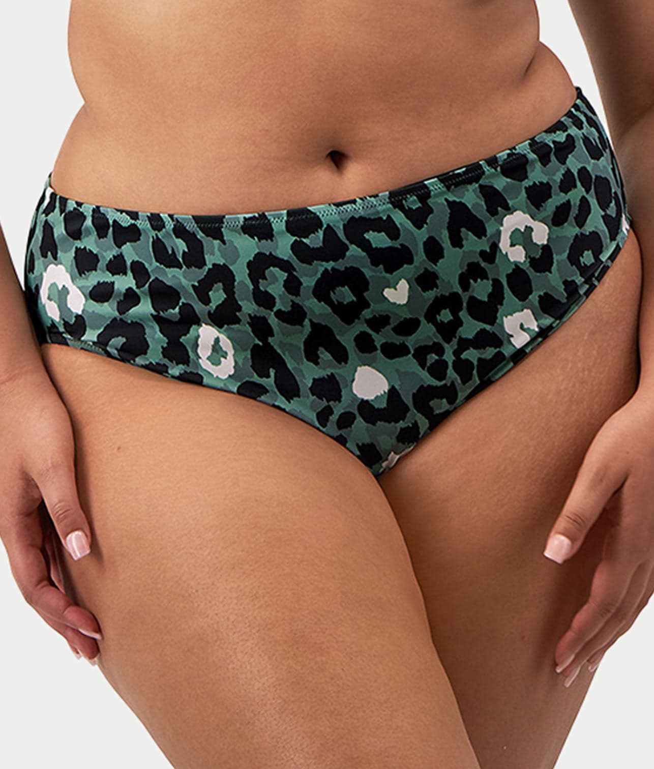 • Get wild in this green leopard print swim bottom