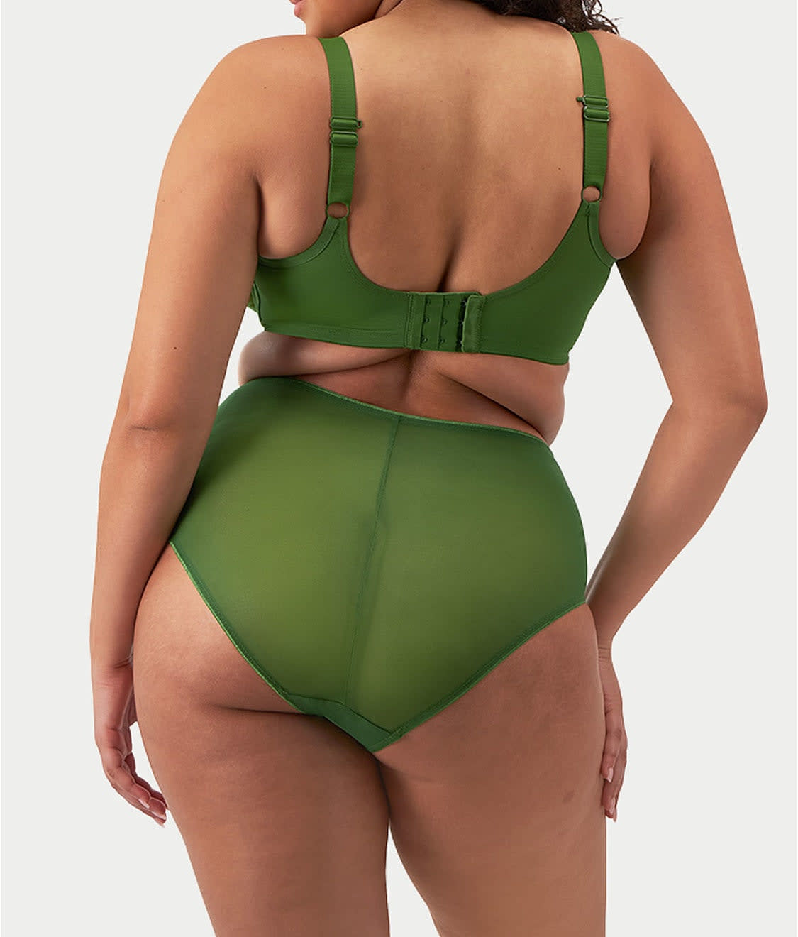 • Semi-sheer stretch mesh with cotton panel