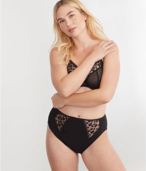 • Hi-cut, modest rise brief provides beautiful coverage