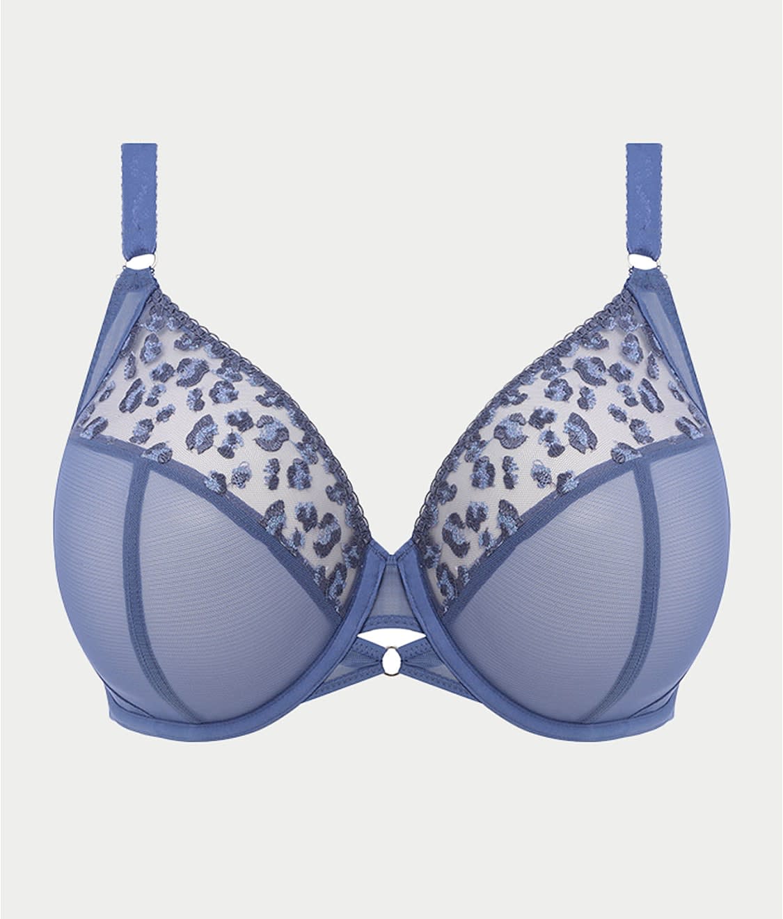 - Top of cups offer leopard spot embroidery with a shimmer