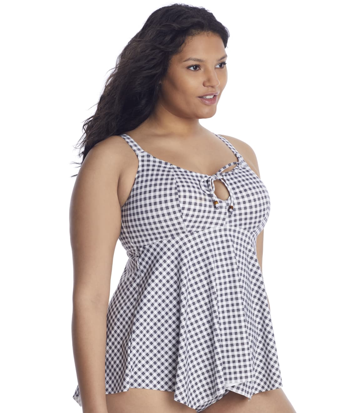 - This flowy, checkered print tankini top is a must-have