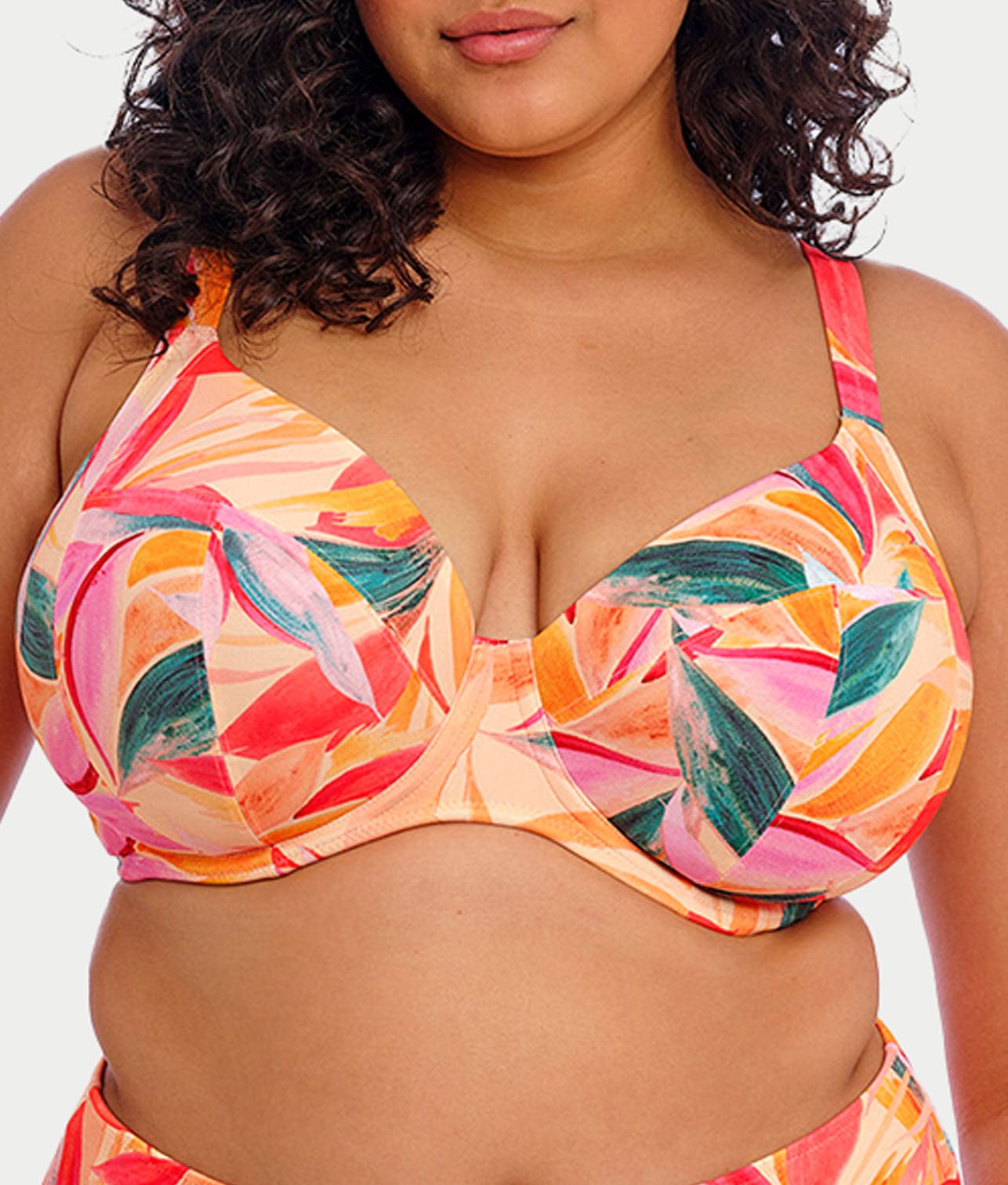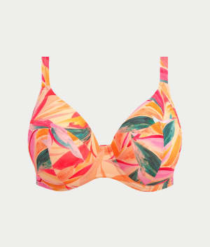 • Feel refreshed in this plunge bikini top with zesty mango & mandarin tones