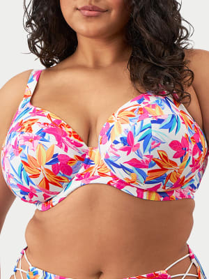 • Feel like you're in a tropical daydream in this underwire plunge bikini top