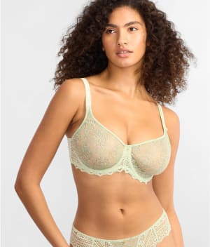 - Floral embroidered lace cups with microfiber wings