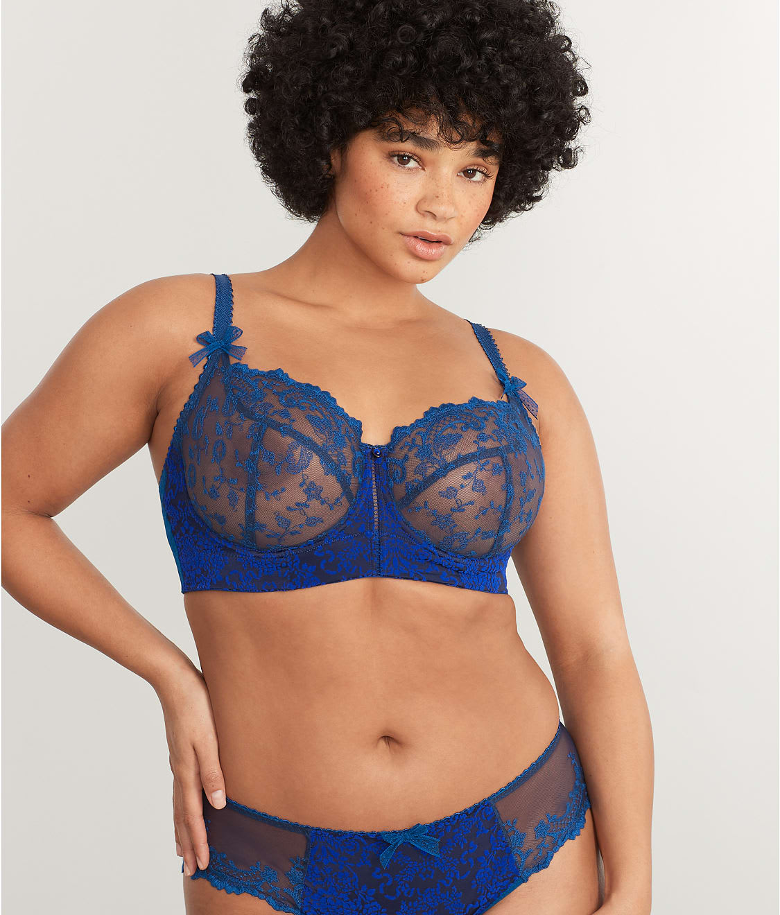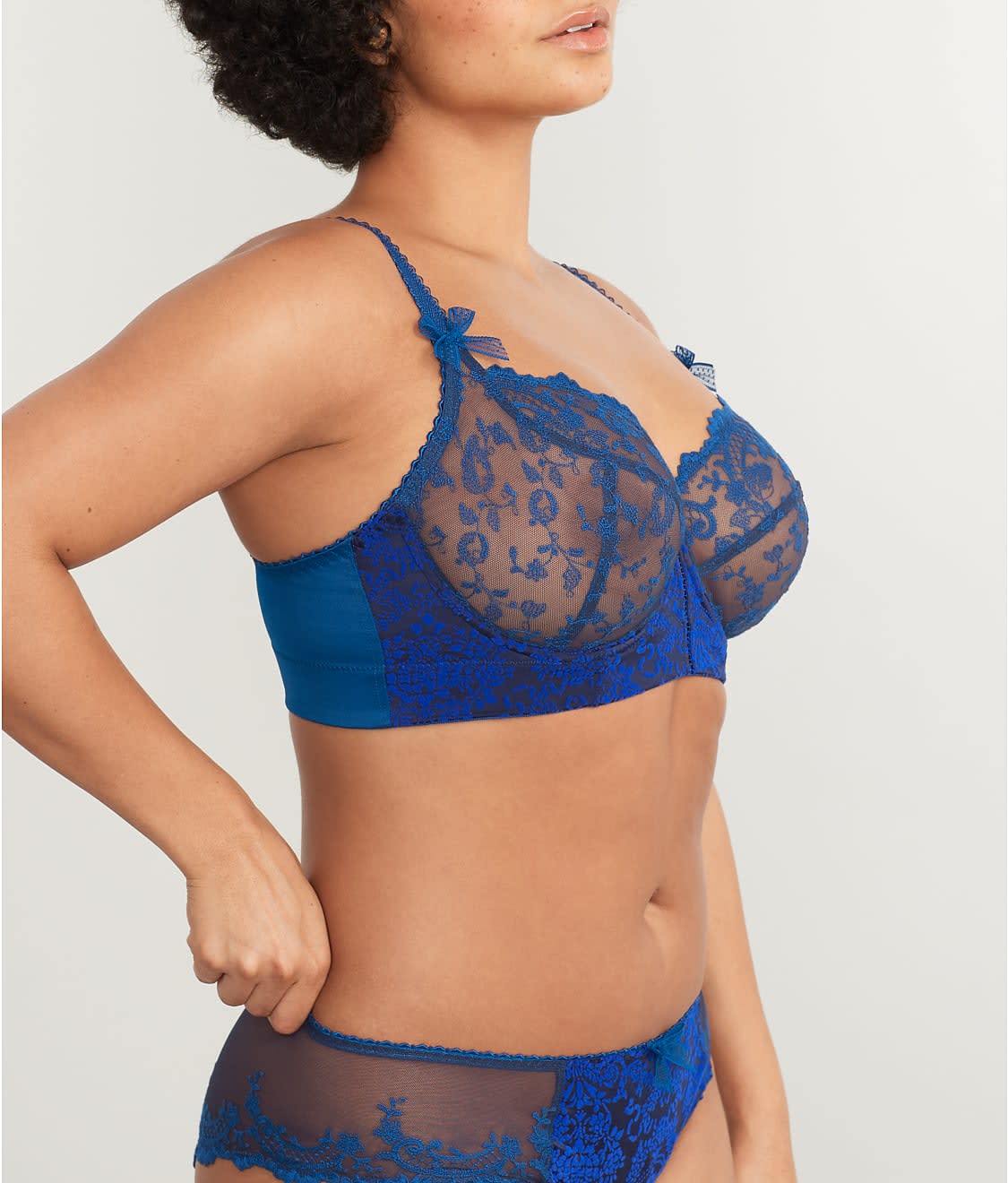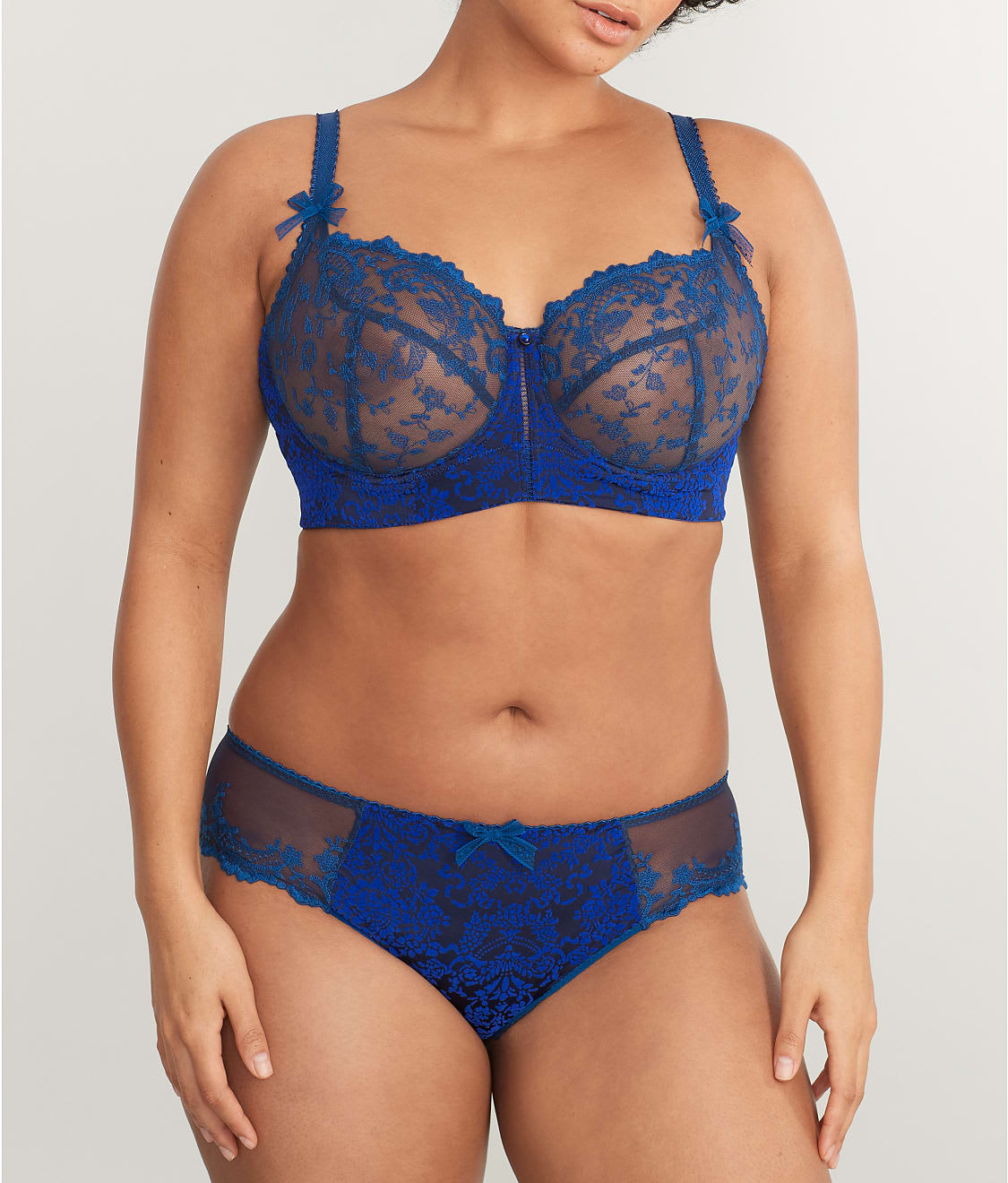 • Supportive sheer mesh cups with exquisite embroidery